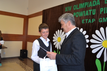 Naszą szkołę reprezentowali: Dagmara Czyżykowska, Wojciech Cieślik i Dawid Gromowski. Przystąpili oni do rozwiązania testu ekologicznego składającego się z 30 pytań. Najlepiej z trudnym testem poradziła sobie Dagmara zdobywając 23 punkty, co dało jej pierwsze miejsce w konkursie. Tylko jednego punktu zabrakło Wojtkowi do zajęcia trzeciego miejsca ( 19 pkt. ). Natomiast Dawid z 16 pkt. zajął siódme miejsce. Wszyscy otrzymali w tym roku wspaniałe nagrody. Dagmara wygrała tablet, Wojtek otrzymał wieże HI-FI, a Dawid ramkę cyfrową do wyświetlania zdjęć w formie elektronicznej. Nagrody zostały ufundowane przez Urząd Gminy Szydłowo, które na podsumowaniu wręczył Pan Dariusz Chrobak Wójt Gminy Szydłowo .