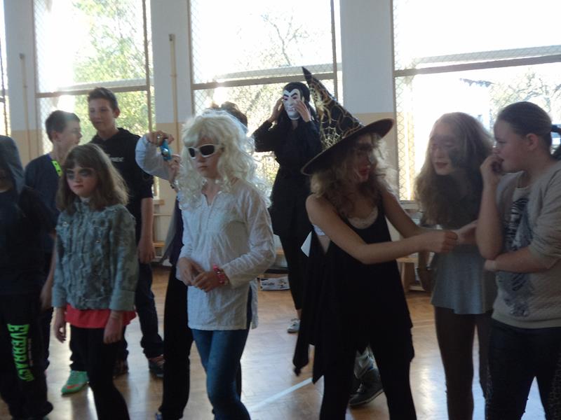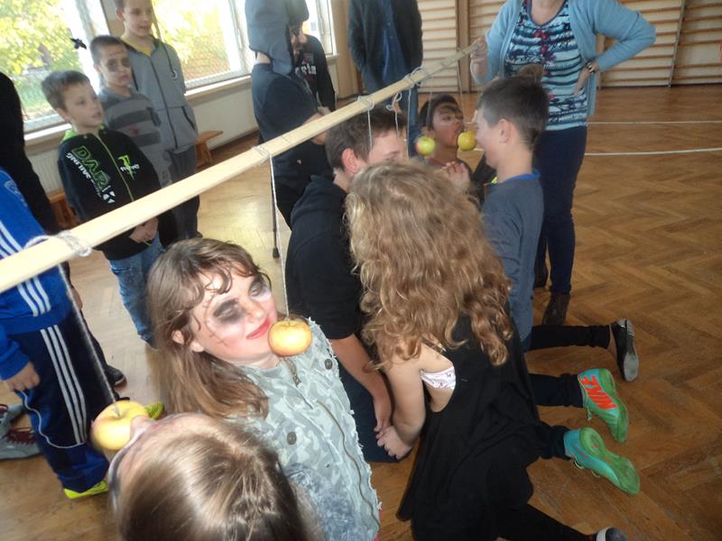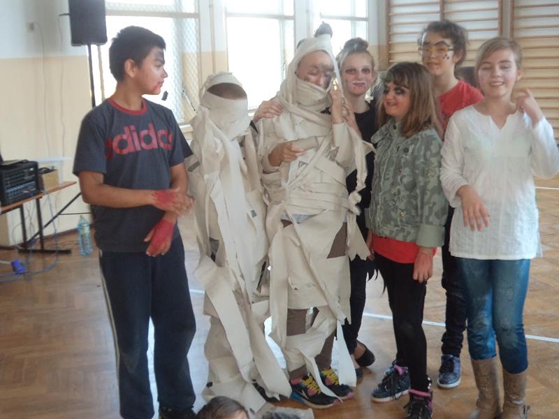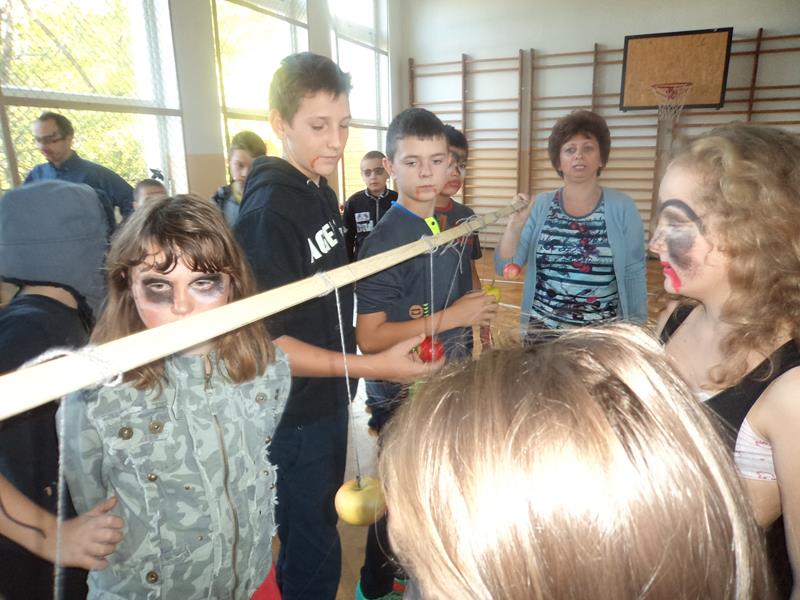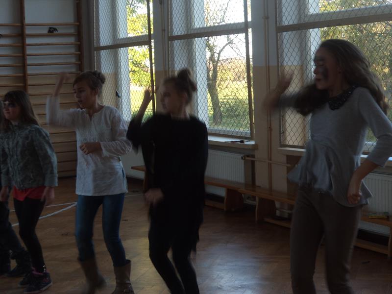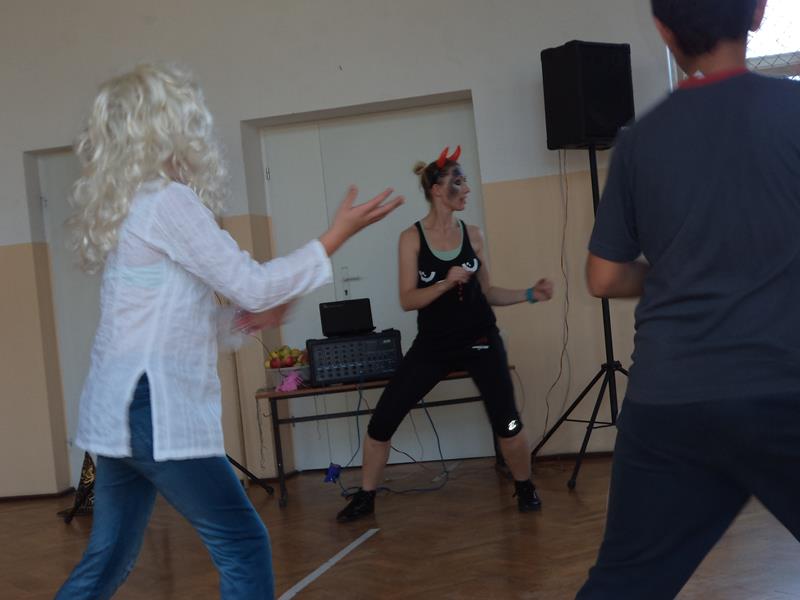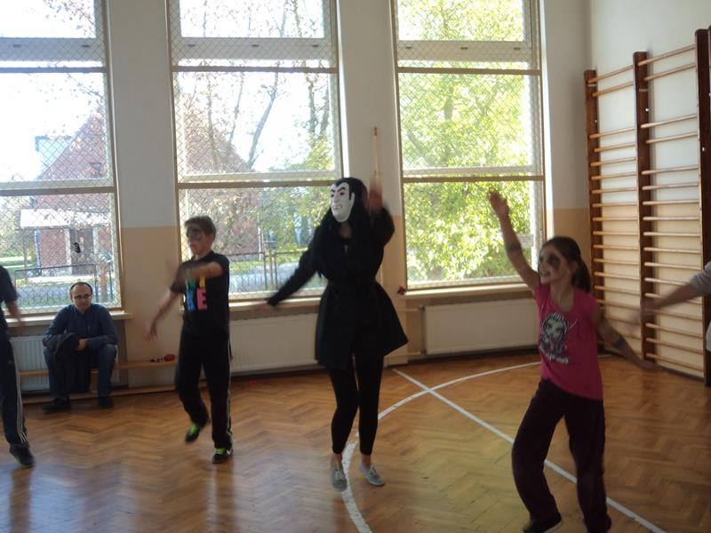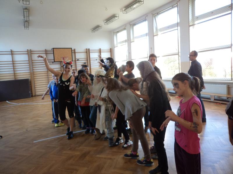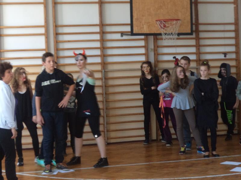 29 października obchodziliśmy w naszej szkole Halloween. W tym roku dzień ten stał pod znakiem Zumby. Nasi uczniowie w przerażających strojach i makijażach pod okiem pani instruktor przez dwie godziny prezentowali swoje umiejętności taneczne. Różnorodność wykonywanych figur oraz wysokie tempo sprawiały, że wysiłek był spory zatem uczniowie potrzebowali trochę czasu na złapanie oddechu. Krótkie przerwy umilały im różnego rodzaju konkursy, które za każdym razem miały więcej chętnych uczestników niż wolnych miejsc. Popularne rytmy oraz mroczna atmosfera sprawiły, że nasi uczniowie bawili się znakomicie o czym świadczył ich twórczy wizerunek oraz wysoka frekwencja.