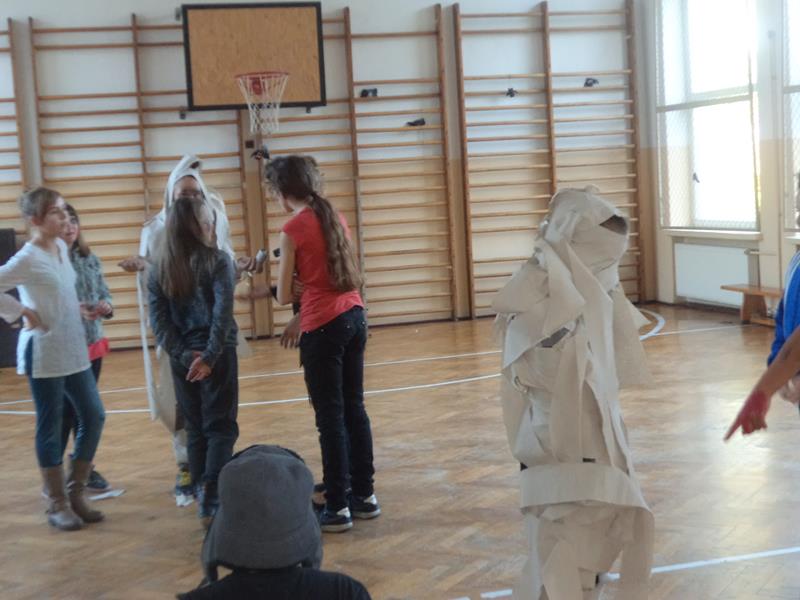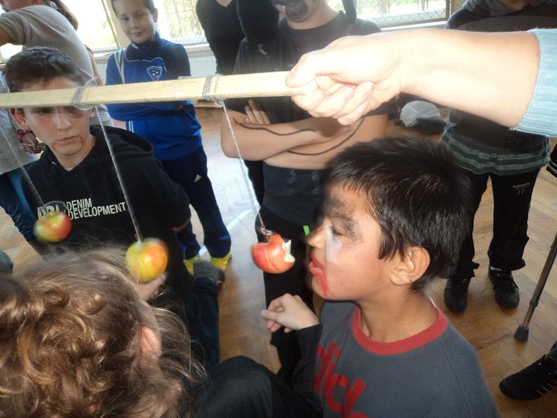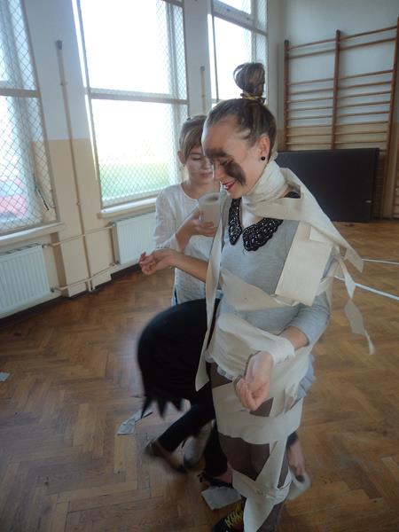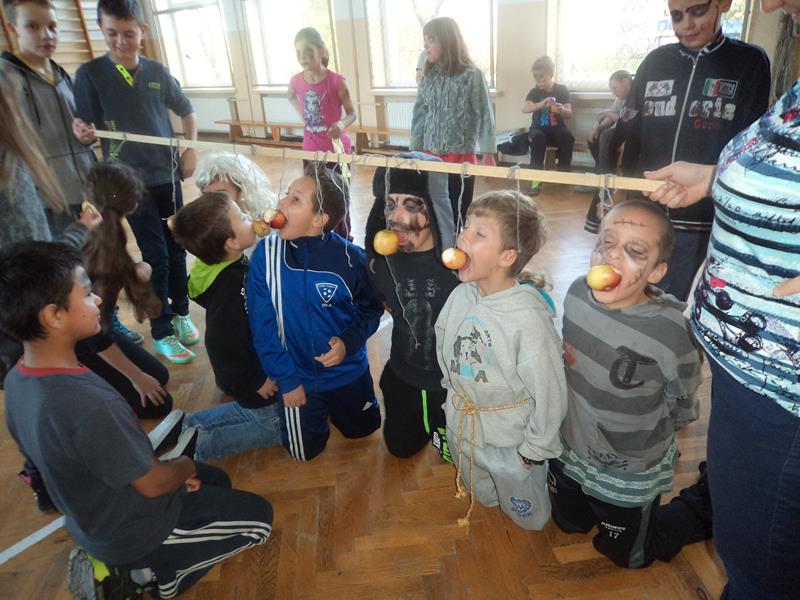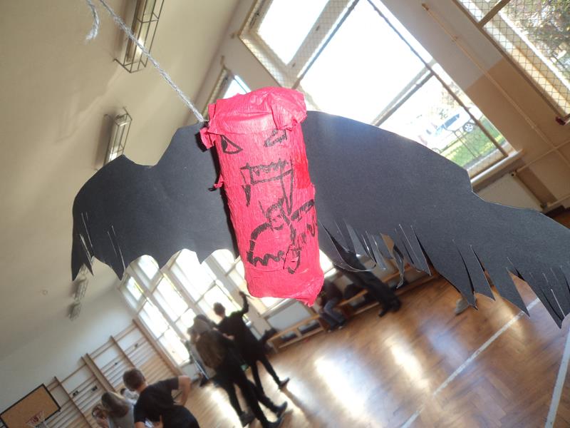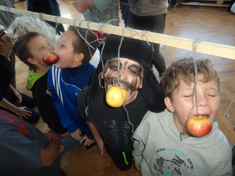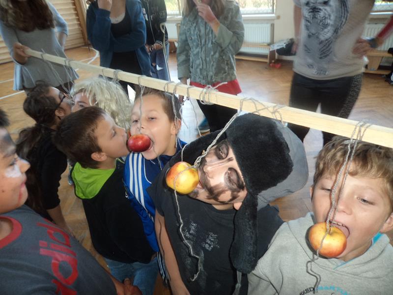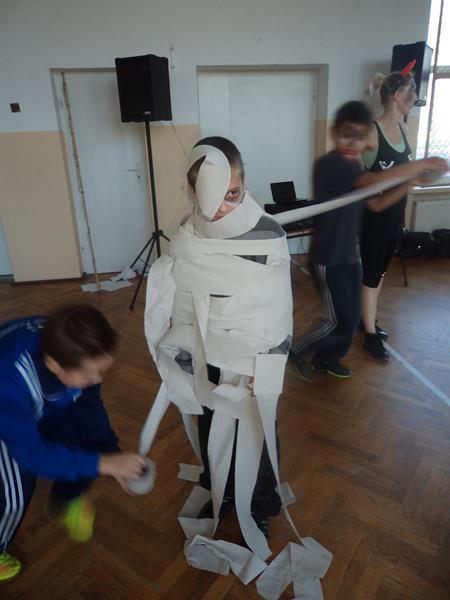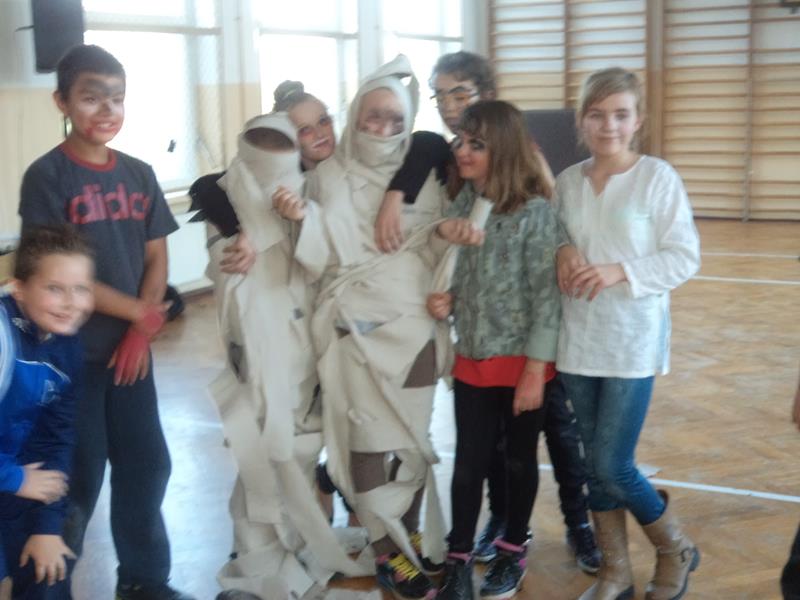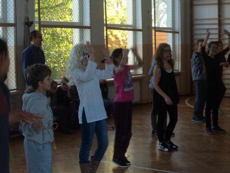 29 października obchodziliśmy w naszej szkole Halloween. W tym roku dzień ten stał pod znakiem Zumby. Nasi uczniowie w przerażających strojach i makijażach pod okiem pani instruktor przez dwie godziny prezentowali swoje umiejętności taneczne. Różnorodność wykonywanych figur oraz wysokie tempo sprawiały, że wysiłek był spory zatem uczniowie potrzebowali trochę czasu na złapanie oddechu. Krótkie przerwy umilały im różnego rodzaju konkursy, które za każdym razem miały więcej chętnych uczestników niż wolnych miejsc. Popularne rytmy oraz mroczna atmosfera sprawiły, że nasi uczniowie bawili się znakomicie o czym świadczył ich twórczy wizerunek oraz wysoka frekwencja.