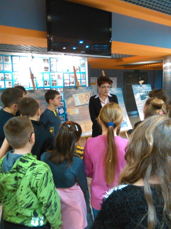 W holu, uczniowie i opiekunowie, przywitani zostali przez Panią Krystynę Kalwasińską - kierownik Miejskiej Biblioteki Publicznej i Pana Janusza Marciniaka- kierownika działu technicznego. Zza ich pleców, w sposób szczególny, witał również Juliusz Słowacki, zachęcając do zapoznania się ekspozycją, która przywędrowała do Wałcza, aż z Książnicy Polskiej, by przybliżyć epokę romantyzmu i twórczość ważnego wieszcza.