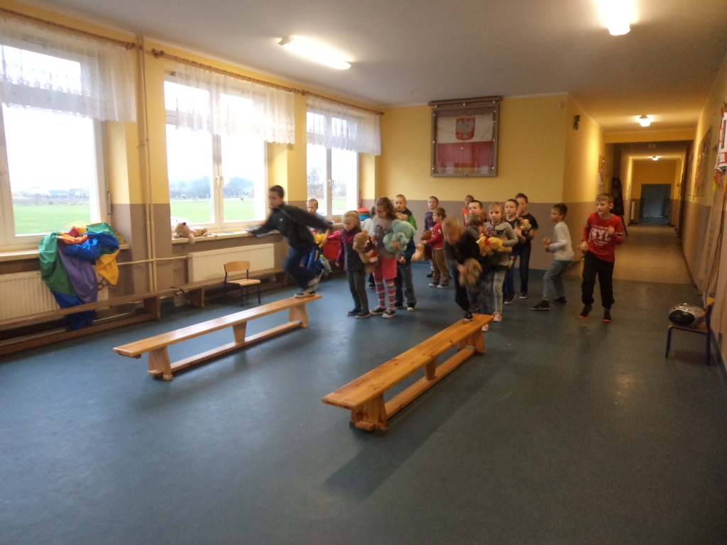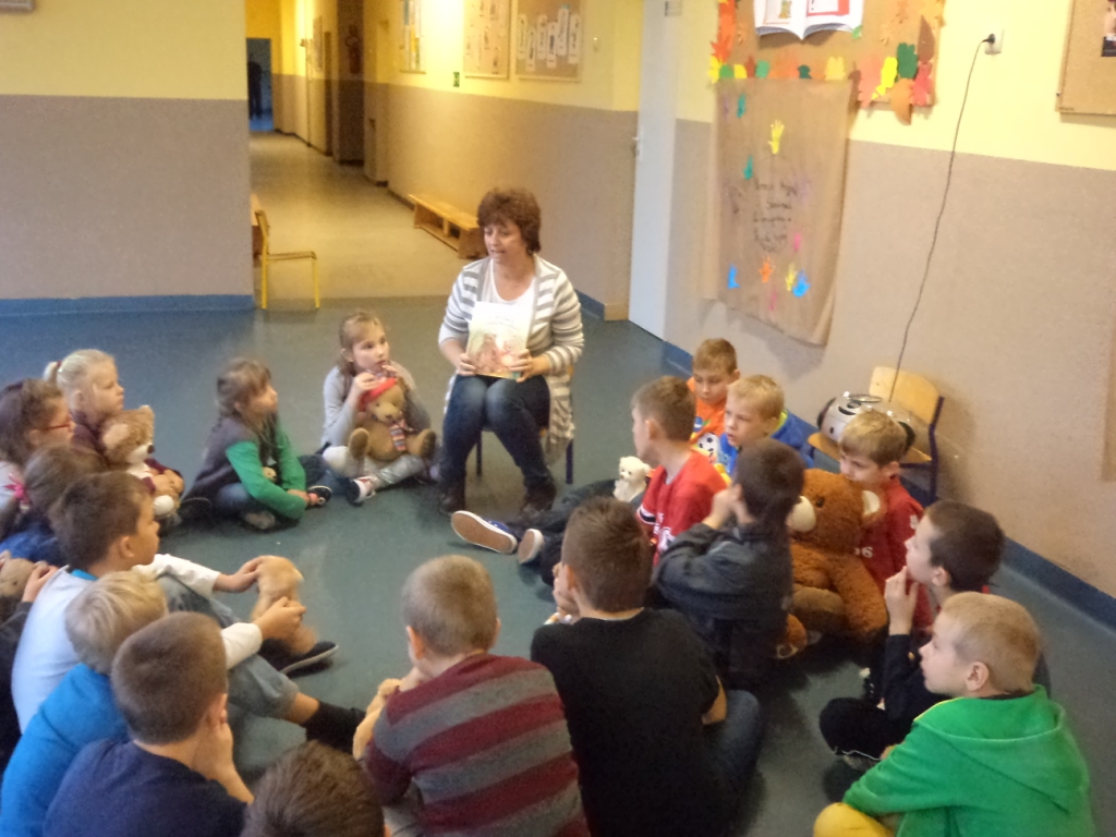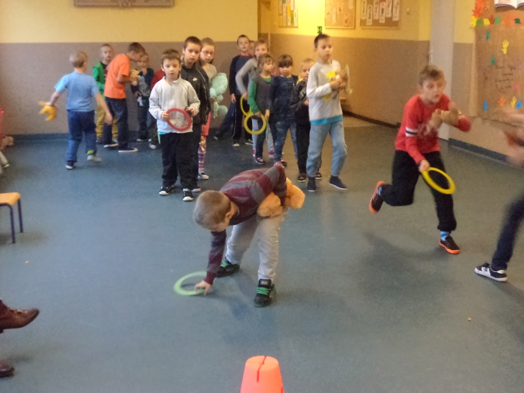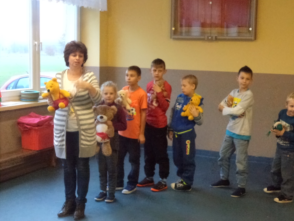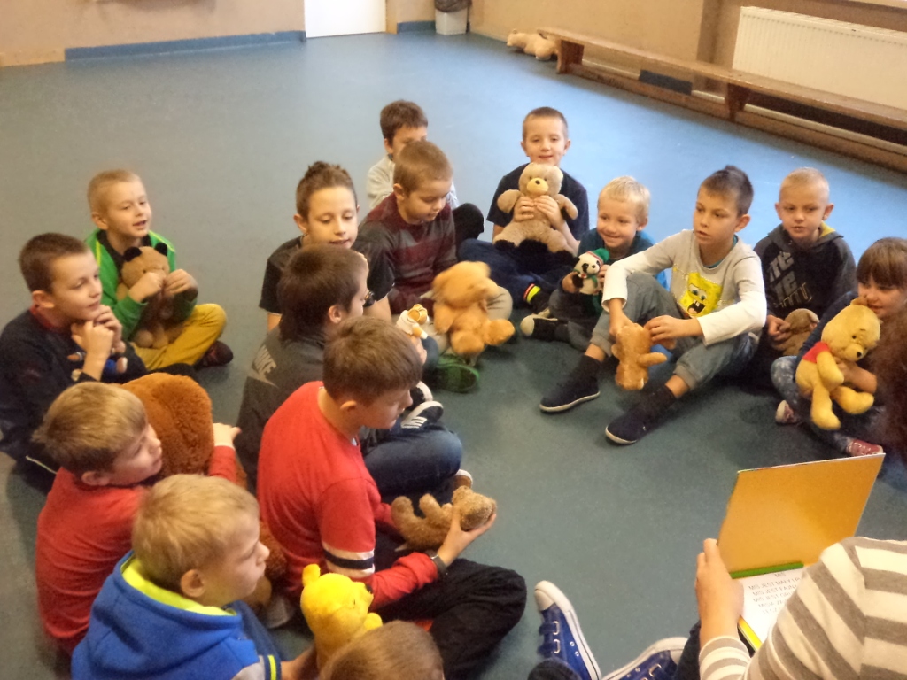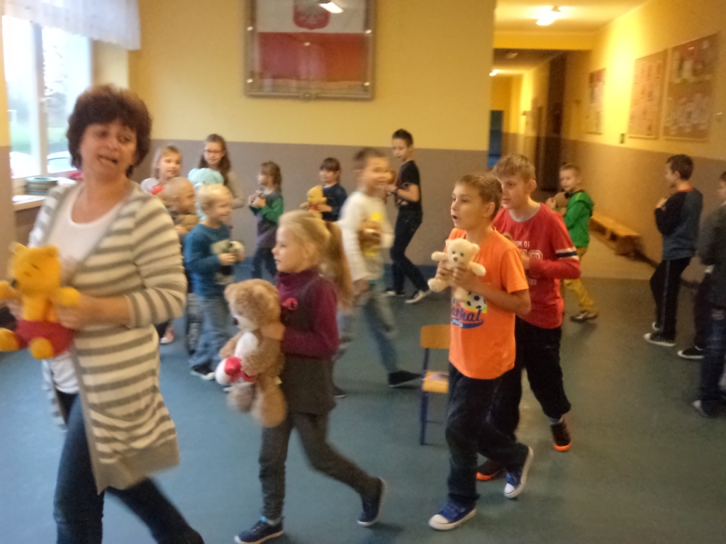 istopada wszystkie pluszowe misie na całym świecie obchodzą swoje święto. Uczniowie z klas I-III naszej placówki skorzystali z zaproszenia pani bibliotekarki, która przygotowała dla dzieci wiele atrakcji. Nasze spotkanie rozpoczęliśmy od wspólnej recytacji wiersza Miś. Dzieci zapoznały się z historią tego święta , wysłuchały fragmentów książki ,,O misiach i o niedźwiadkach’’ W. Pyrcz. Zwiedziły w bibliotece wystawę książek, których bohaterami są misie. Uszatek, Puchatek, Yogi, Paddington czy Colargol to najbardziej znane misie,które oglądały na gazetce szkolnej. Dzieci ze swoimi pluszakami bawiły się przy muzyce oraz podczas zabaw ruchowych, sportowych i konkursów plastycznych. Najwięcej emocji wzbudziło zjadanie miodku ze spodków przez ,, misiaczków ’’ oraz pokonywanie przeszkód ze swoimi pluszakami . Całą uroczystość zakończyła parada pluszowych misiów.