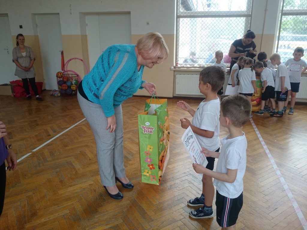 Podczas zakończenia uroczystości z rąk pani dyrektor Marty Rorbach dzieci otrzymały atrakcyjne nagrody rzeczowe.