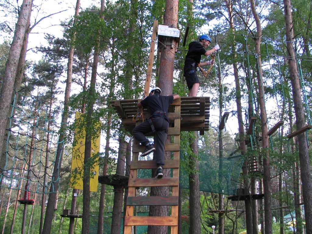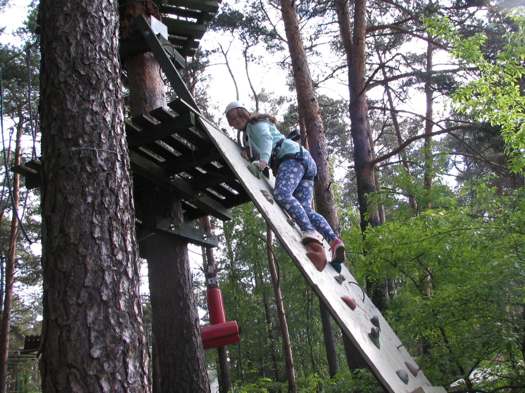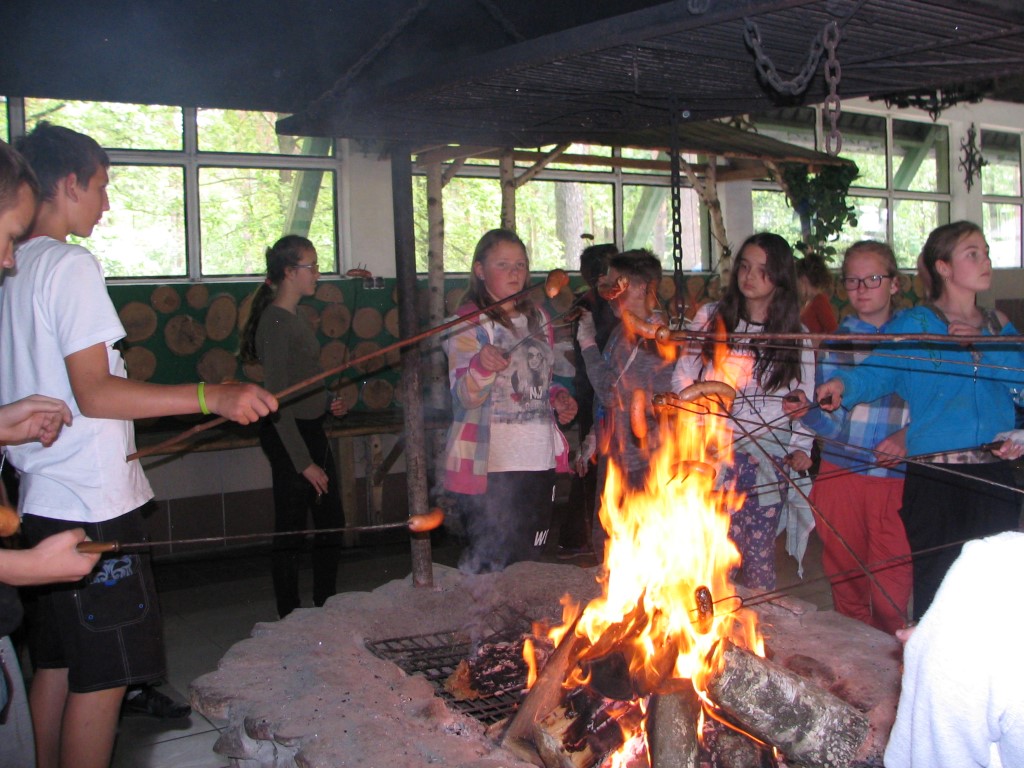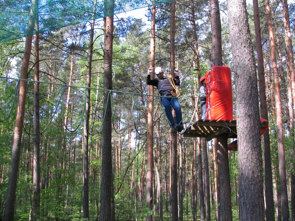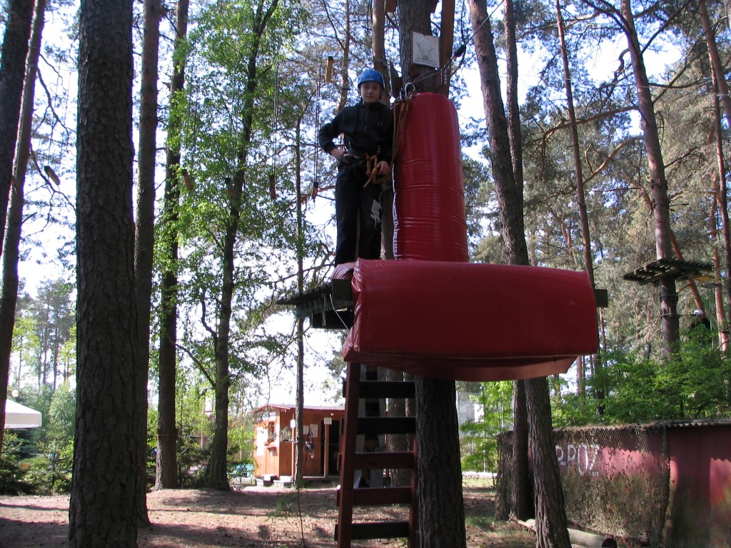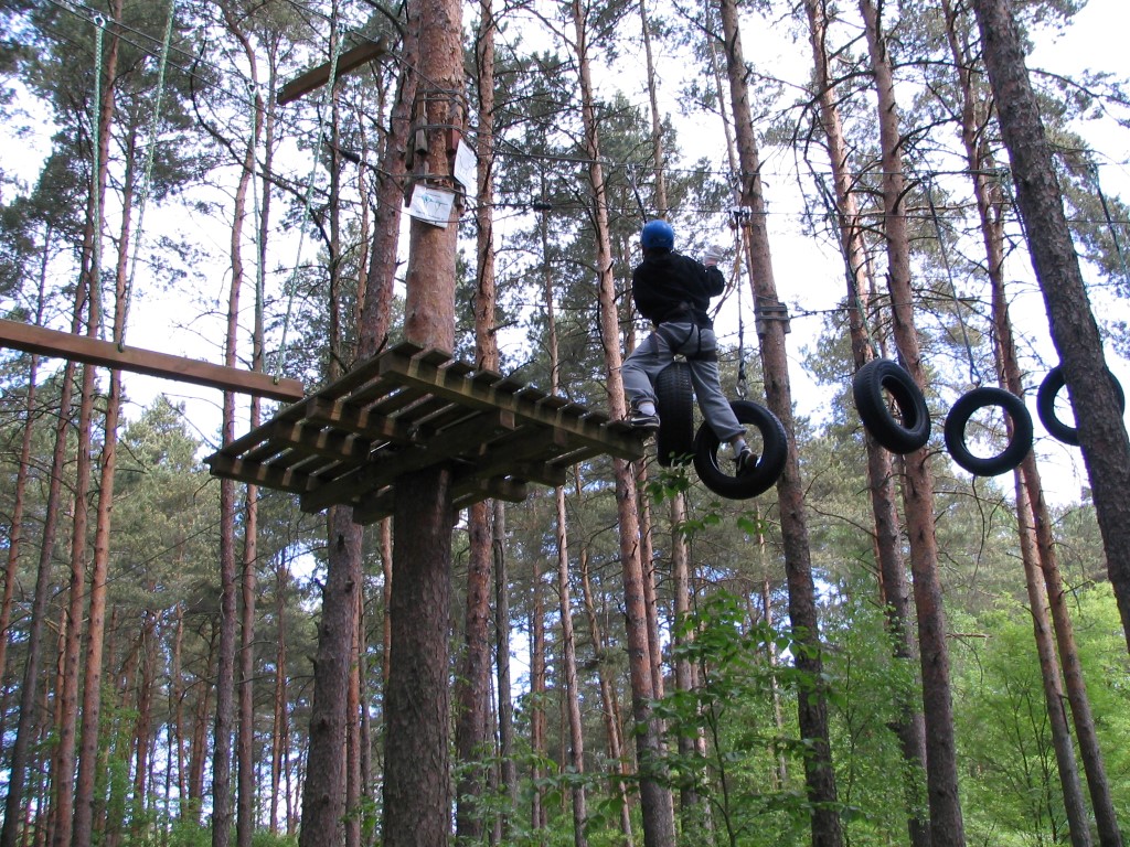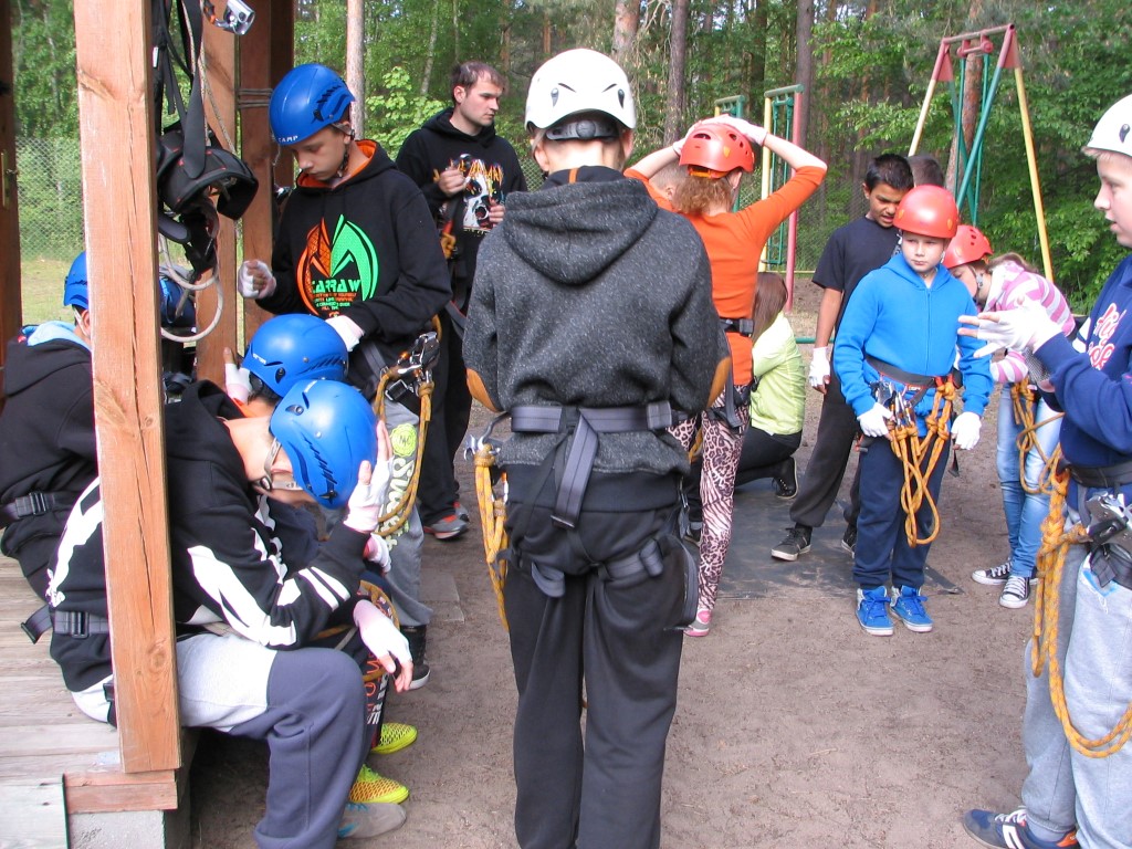 Niedawno wybraliśmy się na wycieczkę do Parku Linowego koło Piły. W tej wyprawie uczestniczyli prawie wszyscy uczniowie klas starszych ( IV-VI ). Celem tej wycieczki było spędzenie na łonie natury czasu, który dał nam możliwość nabrania pewności siebie, przełamania własnych słabości, poprawienia kondycji fizycznej, a wszystko to we wspaniałej scenerii sosnowego lasu. Uczestnicy mieli do dyspozycji trasę zieloną „Ścieżka pod reglami” , oraz trasę niebieską „Ścieżka nad reglami" . Czekały tam na nas różne atrakcje między innymi: trapezy, mosty birmańskie, kładki, ruchome belki, siatka, skok tarzana, mosty tyrolskie. Uczniowie przeszli podstawowe szkolenie alpinistyczne i ochoczo ruszyli przełamywać własne lęki. Dla większości z nich była to pierwsza tego typu atrakcja w życiu, ale jak sami stwierdzili „ z pewnością nie ostatnia”. Co niektórzy już po pokonaniu przeszkód czuli niedosyt i za niewielką dopłatą spróbowali swych sił jeszcze raz. Po trudach wspinaczki, zmęczeni, ale radośni i głodni poszliśmy na przygotowane dla nas ognisko, by uzupełnić pokłady energii. Kiełbasek było na tyle dużo, że nie byliśmy w stanie ich przejeść. Po posiłku wybraliśmy się nad jezioro „Płotki” na spacer po plaży. Dzieci nie mogąc doczekać się pełni lata moczyły swoje stopy w wodzie akwenu i podziwiały wspaniałe okazy ryb. Nie obyło się także bez gier i zabaw ruchowych na plaży. Chłopcy rozegrali mecz plażowej piłki nożnej, a dziewczęta turniej ringo. Zaliczyliśmy także wybudowany niedawno i oddany do użytku Plac Zabaw z prawdziwego zdarzenia. Opuściliśmy malownicze tereny w nadziei, że jeszcze kiedyś uda nam się spróbować swych sił w może jeszcze trudniejszych Parkach Linowych, których powstaje w naszym kraju coraz więcej.