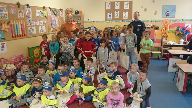 21 października 2015r. dzieci z oddziałów przedszkolnych i z klas I-III uczestniczyły w spotkaniu dotyczącym bezpieczeństwa. Nasi goście z Komendy Powiatowej Policji w Pile w ciekawy sposób opowiedzieli dzieciom o tym, jak prawidłowo należy zachowywać się w ruchu drogowym, unikać wszelkich zagrożeń, w tym również w kontaktach z osobami nieznanymi. Dzieci przypomniały sobie również numery telefonów alarmowych oraz to, w jaki sposób należy wezwać pomoc. Bajka o królu, który szukał lekarstwa dla swojej córki, wprowadziła dzieci w tematykę związaną z transportem wodnym, powietrznym i lądowym. Zwieńczeniem tego ciekawego spotkania był konkurs podsumowujący wiedzę dzieci na temat własnego bezpieczeństwa.