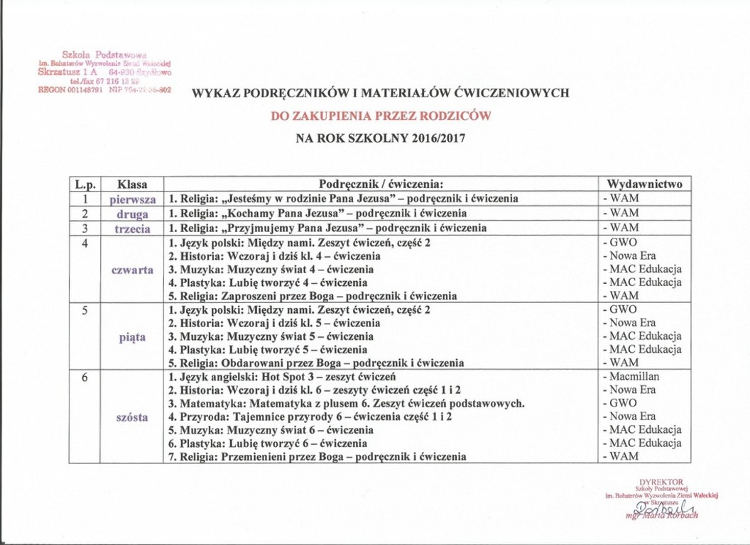 Drodzy Rodzice zerknijcie jakie podręczniki i materiały ćwiczeniowe musicie dokupić swoim pociechom na nowy rok szkolny 2016/2017. Dziękujemy