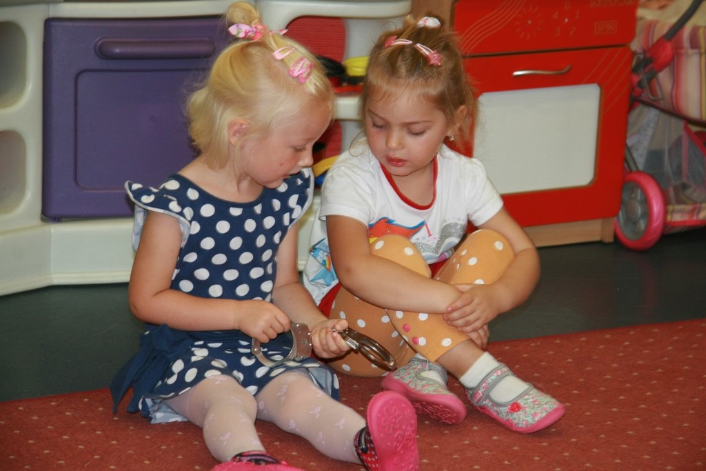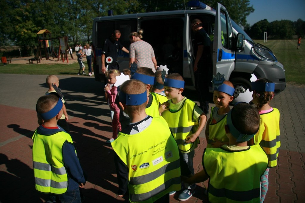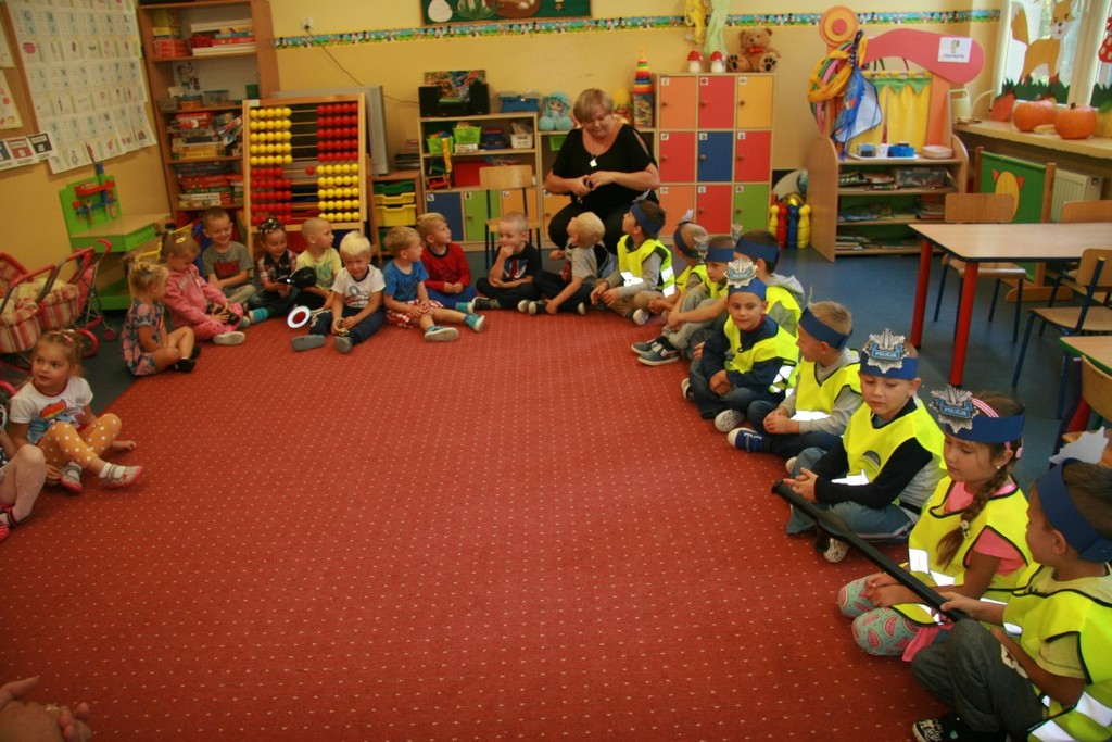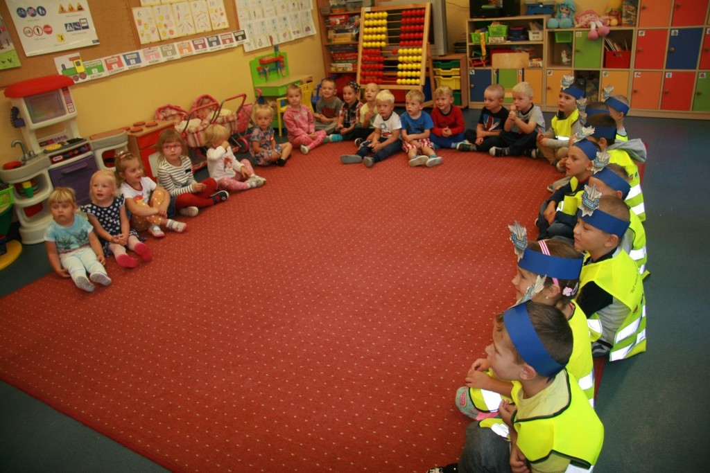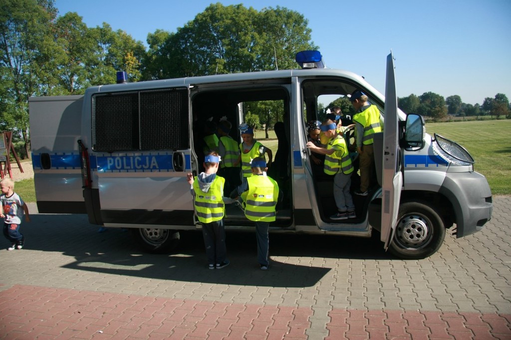 W dniu 16.09.2016r. nasze przedszkole odwiedzili funkcjonariusze Policji z Komendy Powiatowej w Pile. Panowie przeprowadzili prelekcję na temat bezpieczeństwa dzieci na drogach. Policjanci opowiadali przedszkolakom o swojej pracy, zaprezentowali również umundurowanie policjanta. Dużym zainteresowaniem cieszyły się kajdanki oraz inne akcesoria przyniesione przez funkcjonariuszy. Największą radość sprawiła dzieciom jazda radiowozem policyjnym na sygnale.