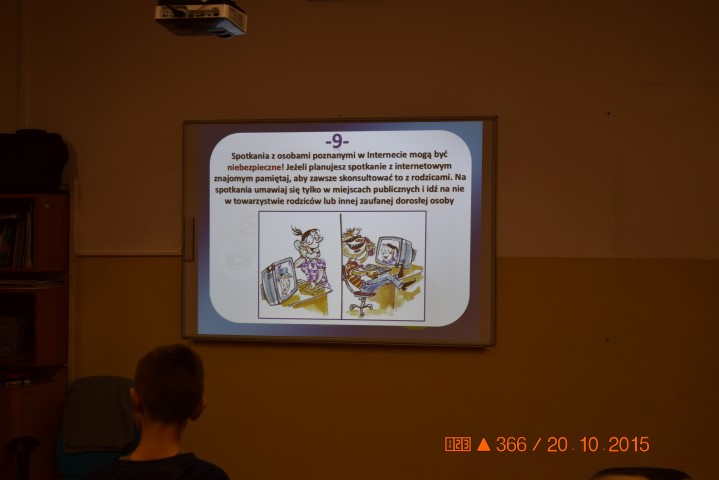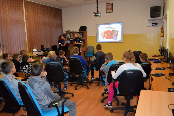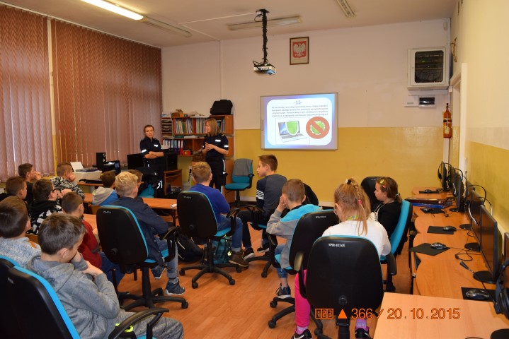 20 października naszą szkołę odwiedziły panie policjantki z Powiatowej Komendy Policji w Pile i przeprowadziły pogadankę w klasach 4-6 na temat cyberprzemocy i niebezpieczeństw czychających na nas w sieci.