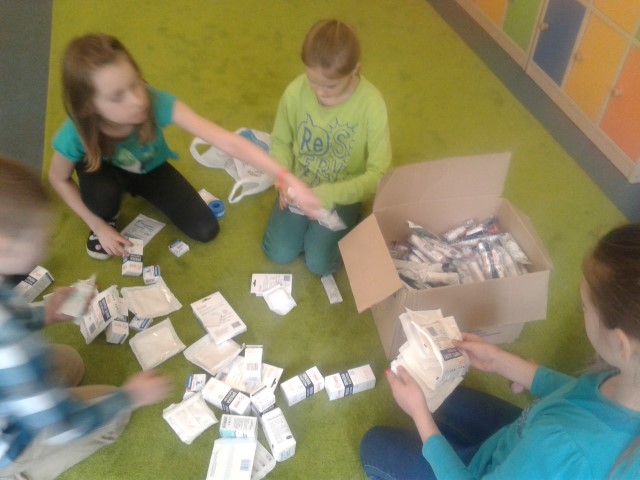 Klasa III podsumowała akcję "Opatrunek na ratunek". 17.03.2017r. zakończyliśmy zbiórkę: bandaży, igieł, strzykawek, opatrunków itd. Całość spakowaliśmy i paczka została wysłana do miejsca głównej zbiórki w Poznaniu, skąd odleci do szpitali misyjnych w Afryce.