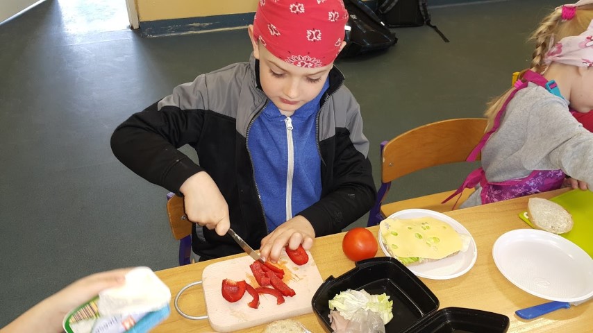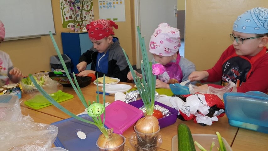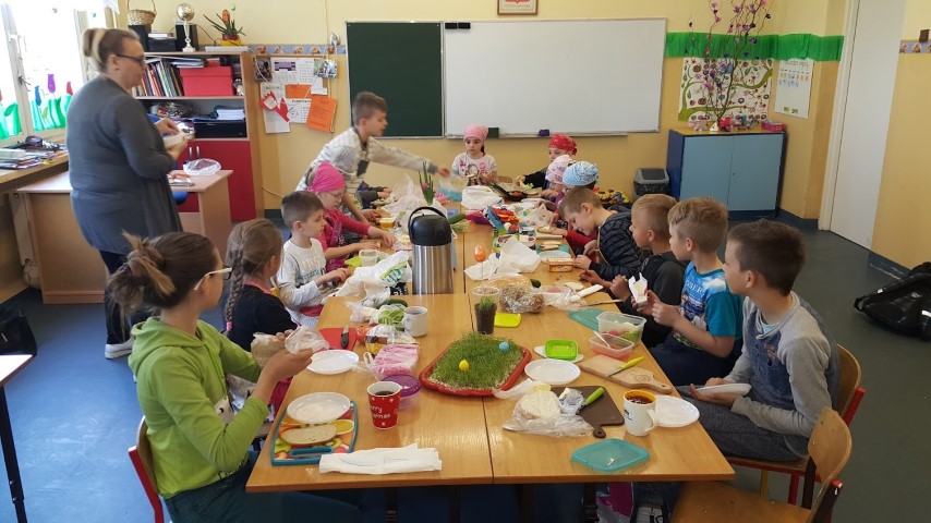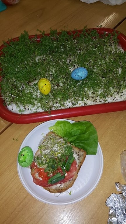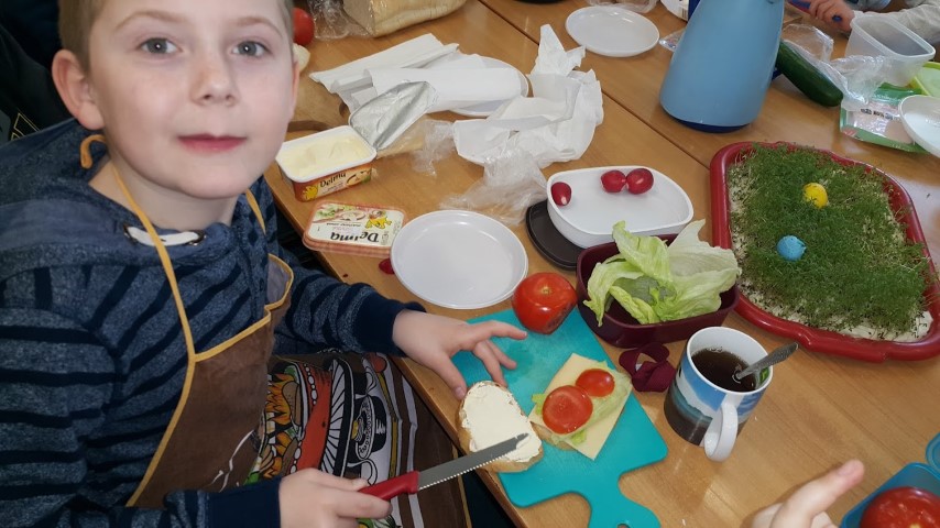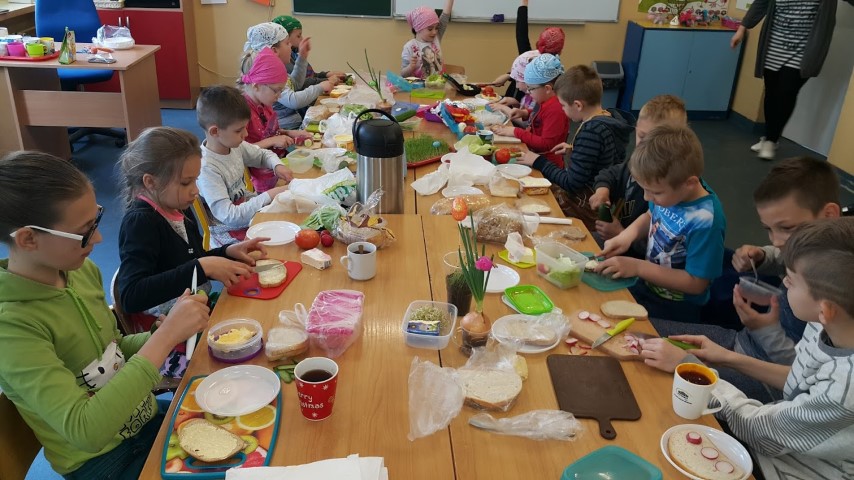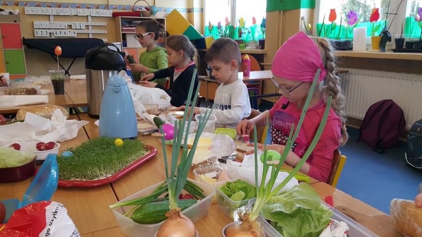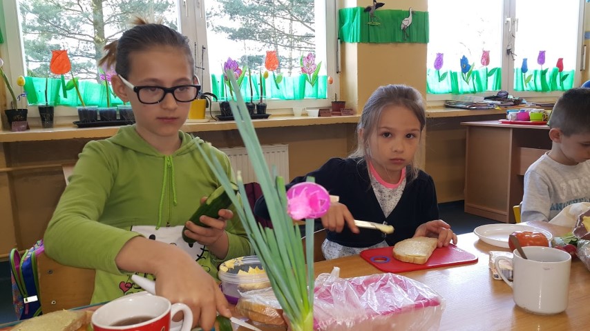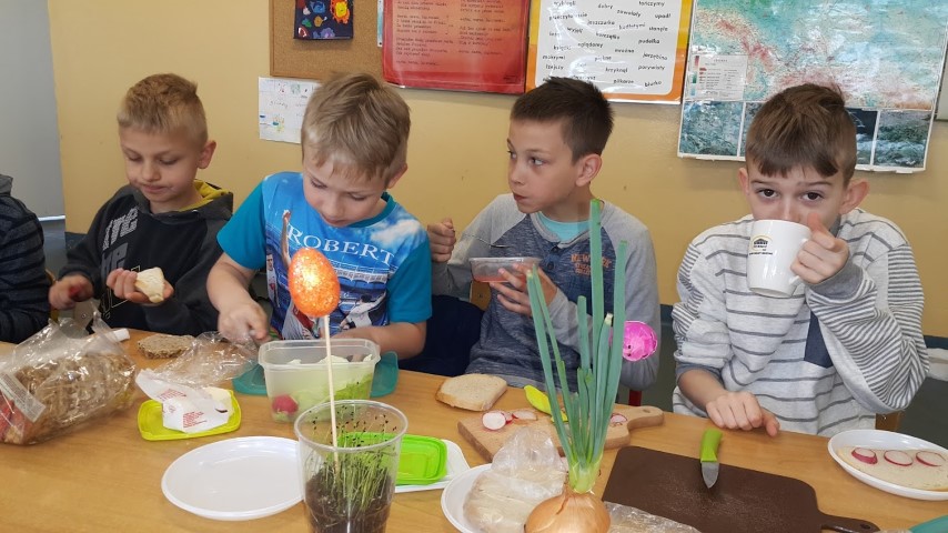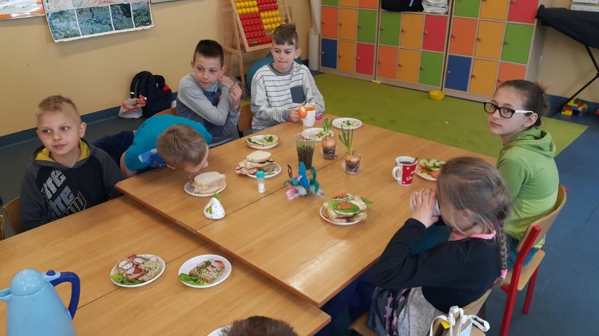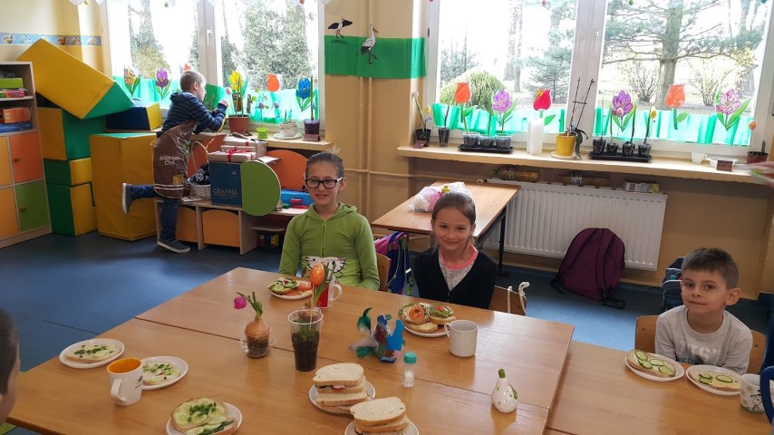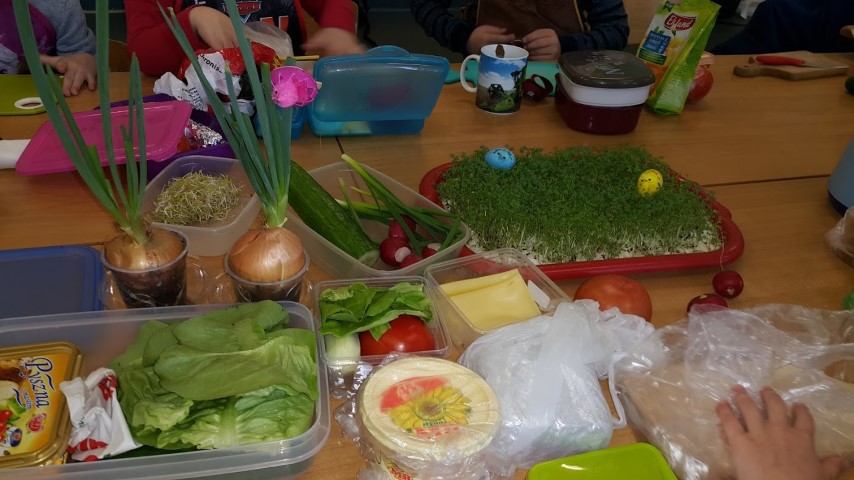 We wtorek 18 kwietnia 2017r. klasy I i III przygotowały zdrowe śniadanie wykorzystując własnoręcznie zasiane lub zasadzone roślinki, które były długi czas podlewane oraz pielęgnowane przez uczniów. Kanapki obfitowały w szczypiorek, kiełki, cebulę, rzeżuchę itp.