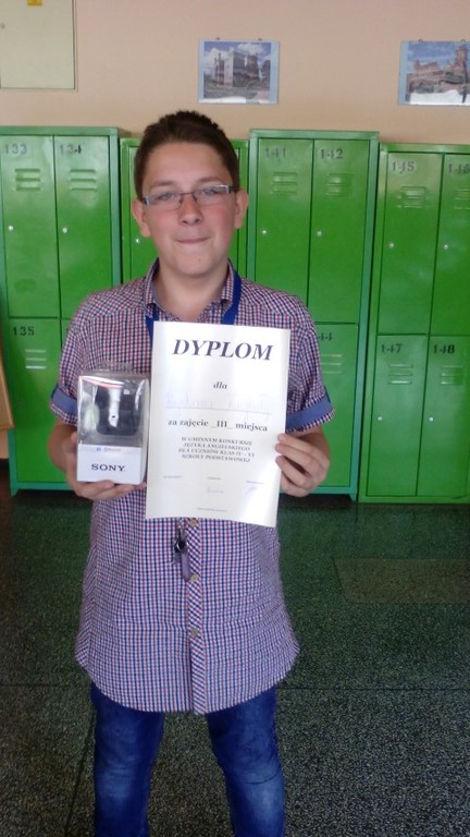30 maja Wasz kolega Krystian Kucybała (VI ) zajął III miejsce w Gminnym Konkursie Języka Angielskiego organizowanym przez Zespół Szkół w Starej Łubiance.