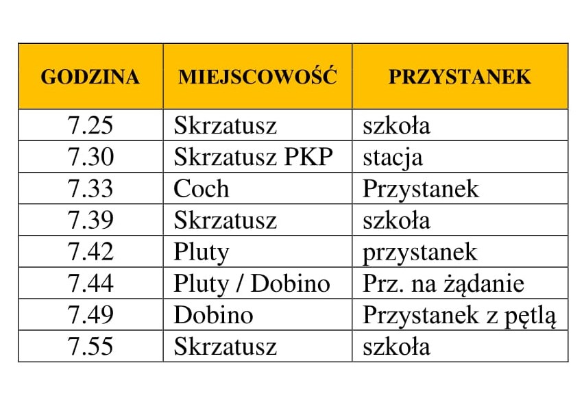 - 10.50 do miejscowości Coch, Skrzatusz PKP