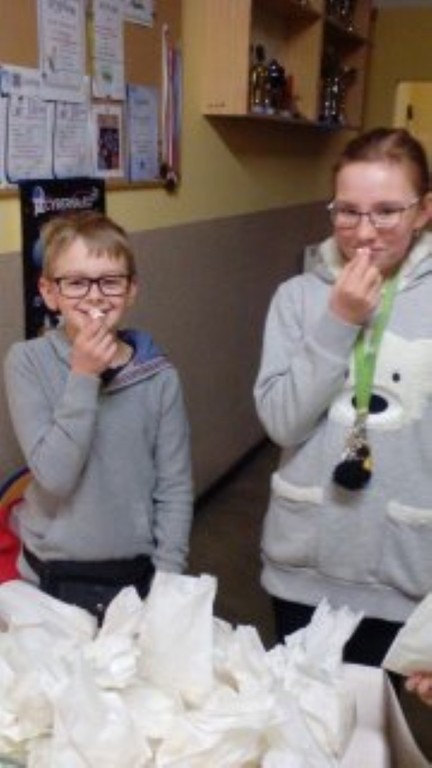 19 stycznia w naszej szkole uniósł się zapach uwielbianego przez wszystkich popcornu. Chętni uczniowie, rodzice i nauczyciele otrzymali od uczniów klasy V torebkę przysmaku na pyszny początek dnia.