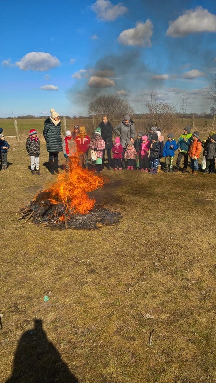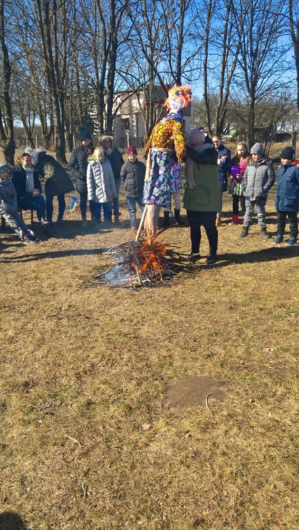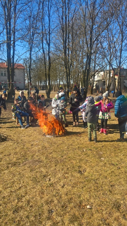 Jak co roku o tej porze witaliśmy dziś WIOSNĘ, słonko zaświeciło niestety przeszywał nas mroźny wiatr, nie daliśmy jednak za wygraną. Przepędziliśmy zimę paląc Marzannę, a żeby się trochę rozgrzać i posilić - upiekliśmy kiełbaski w ognisku.