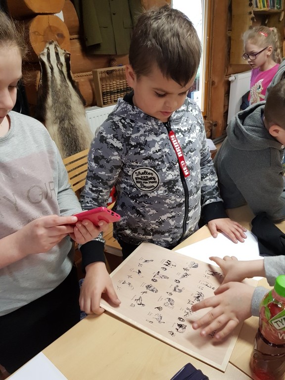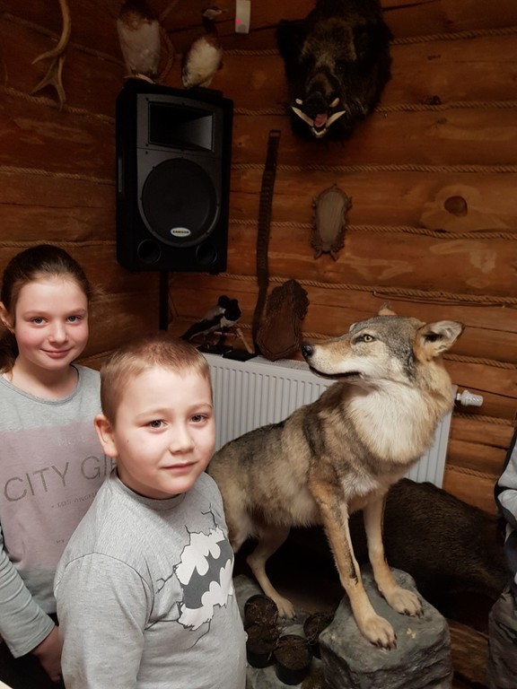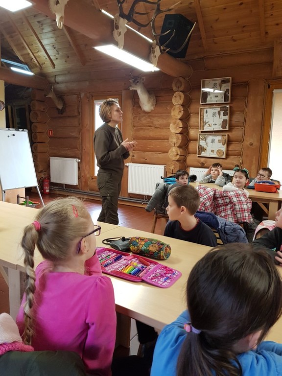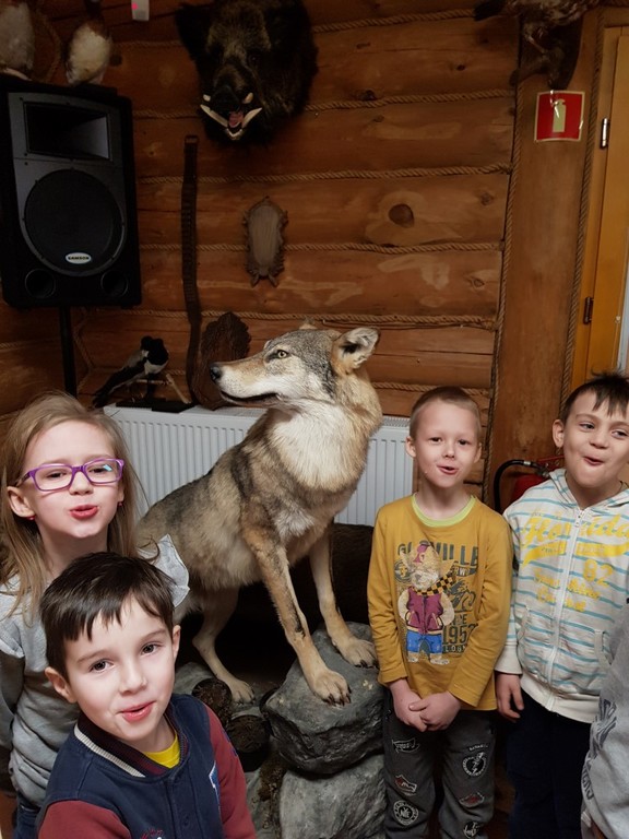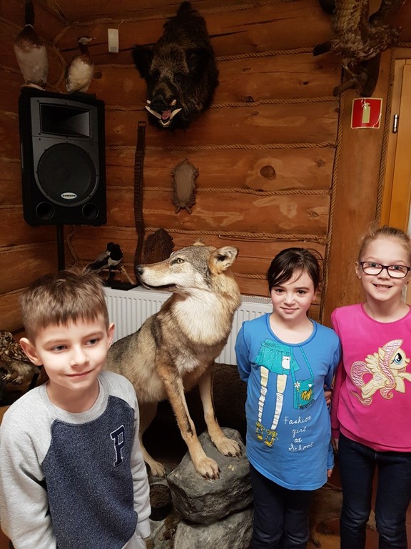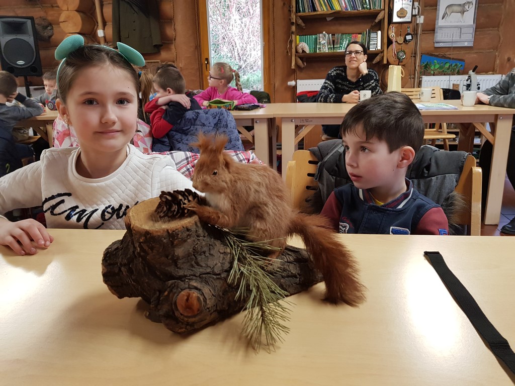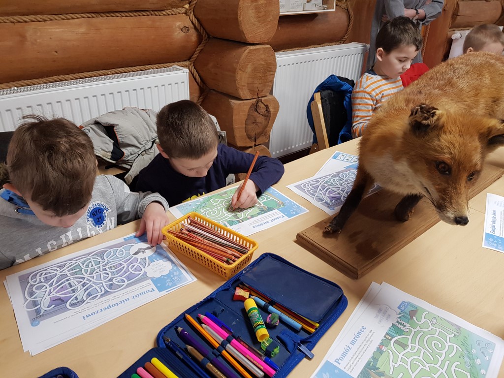 W wygodnym i przestronnym pawilonie dzieci miały okazję wysłuchać pani leśnik, która bardzo interesująco opowiadała nam o faunie i florze tego terenu. Prowadzone zajęcia urozmaiciły spreparowane okazy zwierząt. Podziwialiśmy zastygłe w bezruchu żubra, dzika, rysia, wilka, lisa, kunę, bobra, wiewiórkę. Uczniowie aktywnie pracowali również z kartami pracy. Po zajęciach przespacerowaliśmy się po ogrodzie botanicznym, który liczy ponad 120 przeróżnych gatunków roślin. Niestety, po długiej zimie był on jeszcze mało kolorowy. Ale przy następnej wizycie będziemy podziwiać go już kwitnący całą paletą barw! Pani leśnik zapowiedziała nam też spacer małego badacza po ścieżce przyrodniczo - leśnej, podczas którego zaopatrzeni w pomoce dydaktyczne (plecaczki wraz lupami, lornetkami i kompasami) będziemy poznawać piękną przyrodę. Wycieczka ta bardzo nas ucieszyła i czekamy na następną za miesiąc!