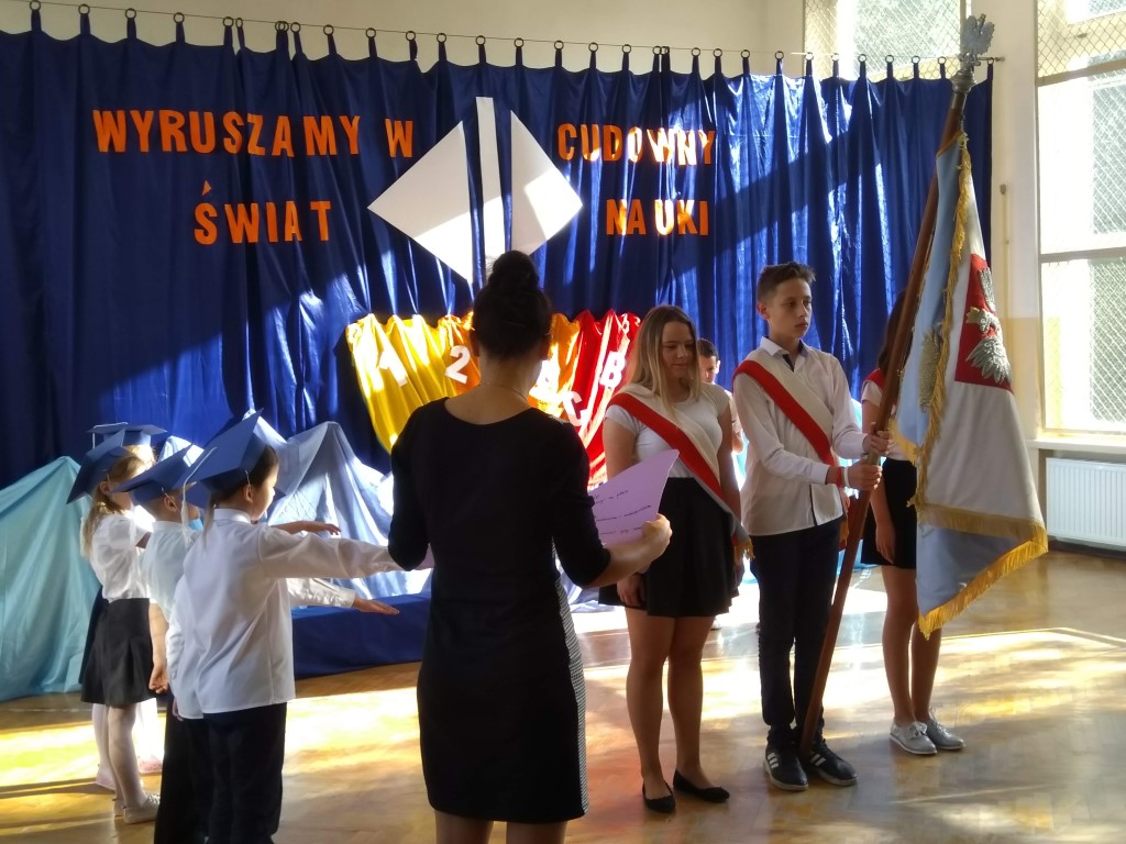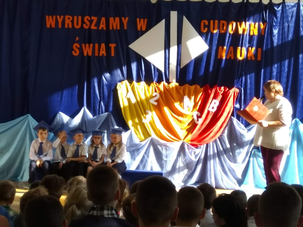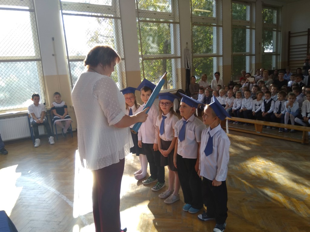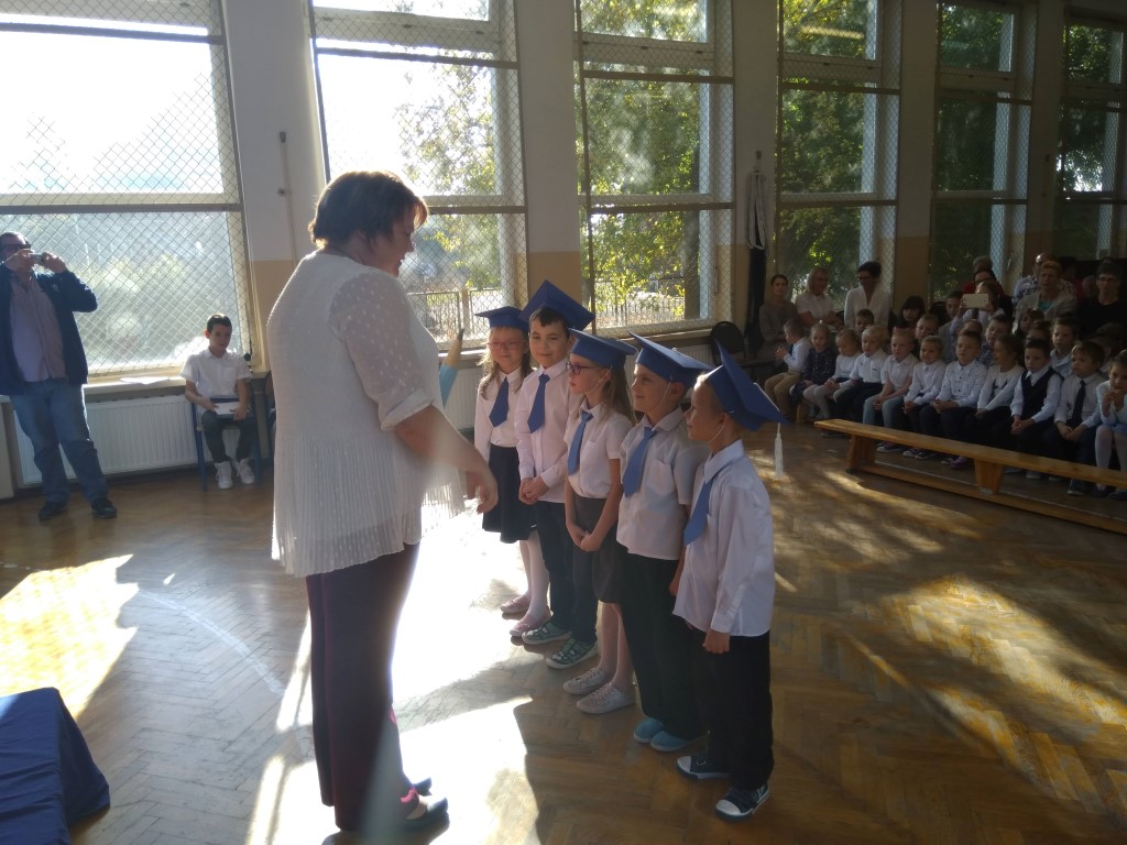12 października był niezwykle ważnym dniem dla każdego pierwszaka w naszej szkole. W tym dniu uczniowie klasy I zostali oficjalnie przyjęci do społeczności uczniowskiej. Uroczyste pasowanie rozpoczęły dzieci, prezentując przygotowany program artystyczny. Pierwszaki pięknie śpiewały, recytowały wiersze i odpowiadały na pytania. Tym pięknym występem dzieci przekonały wszystkich zgromadzonych, że w swojej szkole czują się bardzo dobrze i wiele już potrafią.