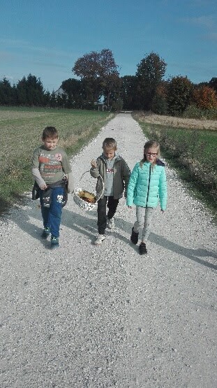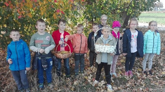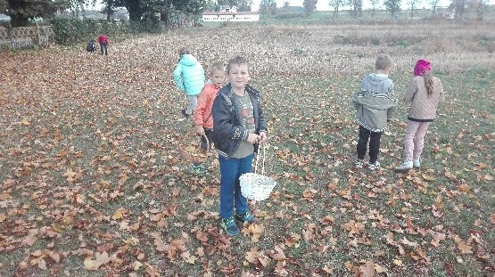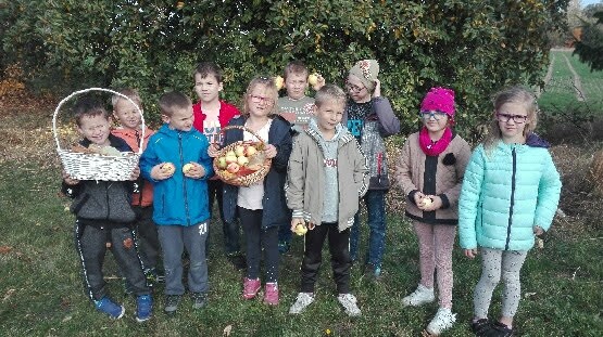 Dnia 19 października klasy I i II wykorzystując piękną pogodę i uroki jesieni udali się na plenerową lekcję przyrody. Lekcja ta dostarczyła uczniom nie tylko wielu wiadomości, ale również niezapomnianych wrażeń. Jesienna przyroda odkryła przed nami swe piękno. Podziwialiśmy jesienne barwy, rosnące krzewy i drzewa, słuchaliśmy odgłosów przyrody. Podczas wycieczki zbieraliśmy najpiękniejsze kolorystycznie liście, żołędzie, kasztany oraz jabłka.
