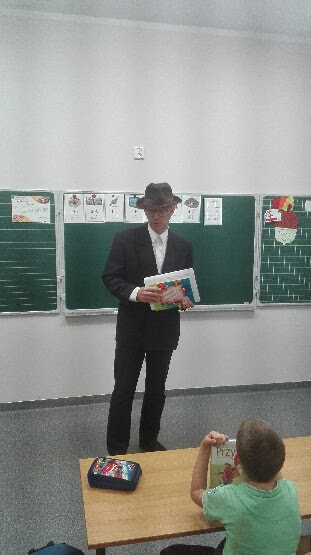 Dnia 25 października do klasy I przyszedł z wizytą wyjątkowy gość. Swoją obecnością zaszczycił nas autor wierszy dla dzieci Jan Brzechwa, w którego postać wcielił się pan Robert Dukiewicz. Na spotkanie z autorem zaprosiliśmy również klasę II.