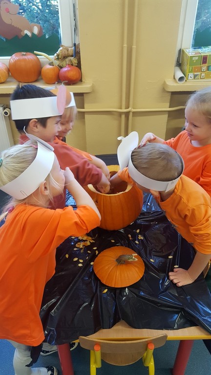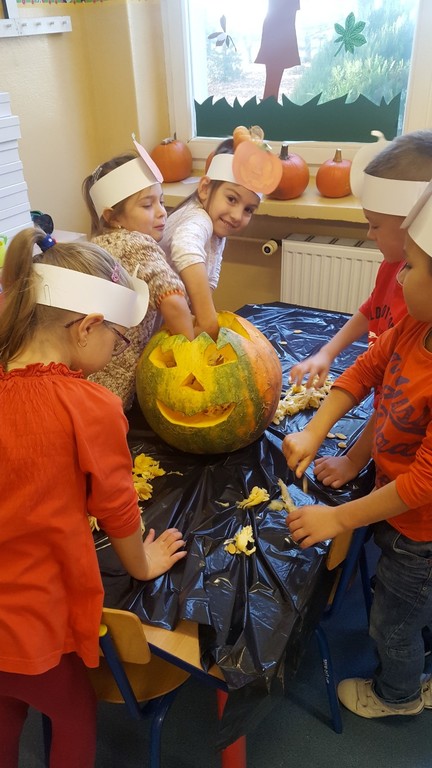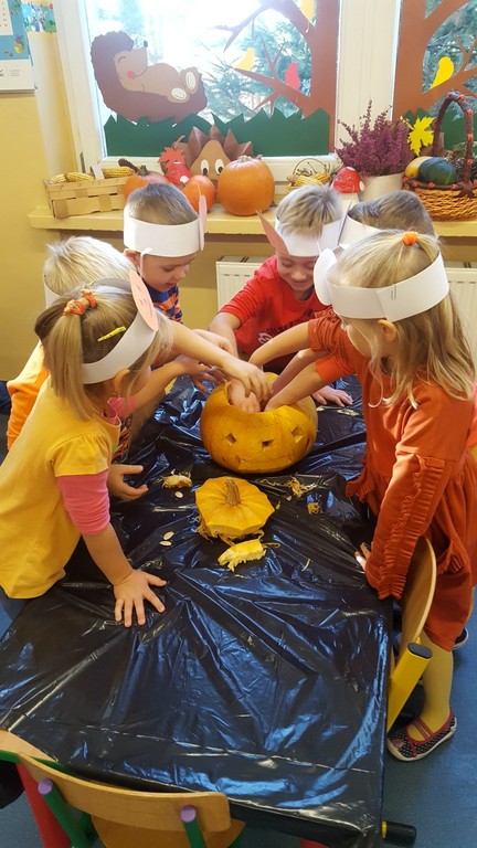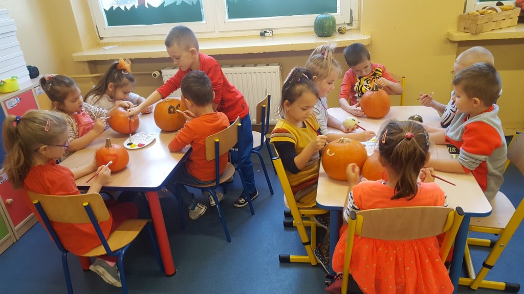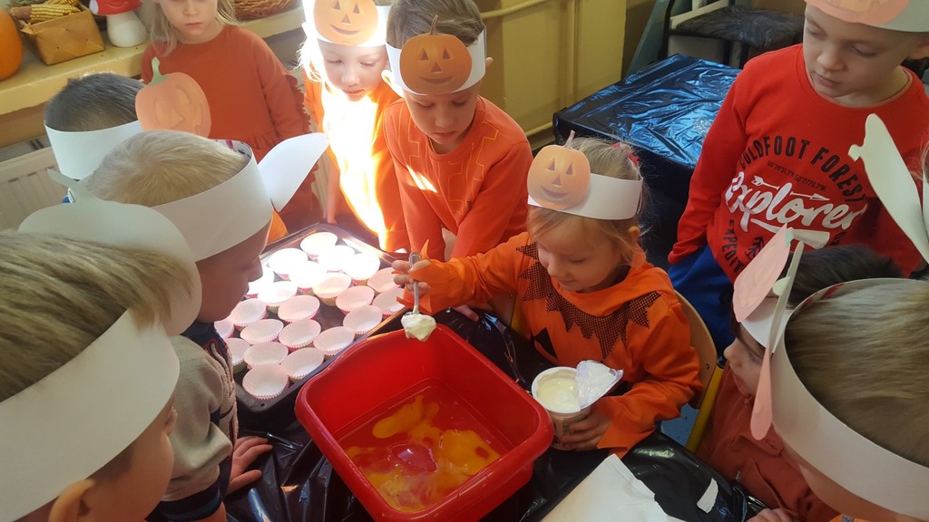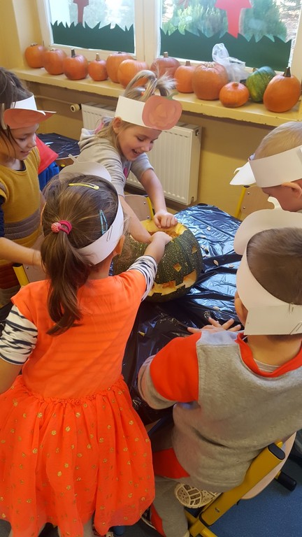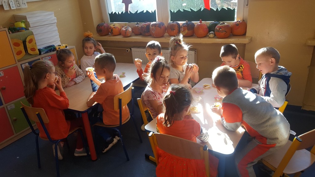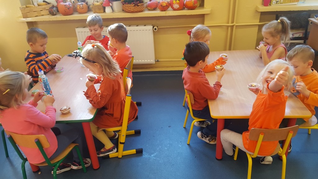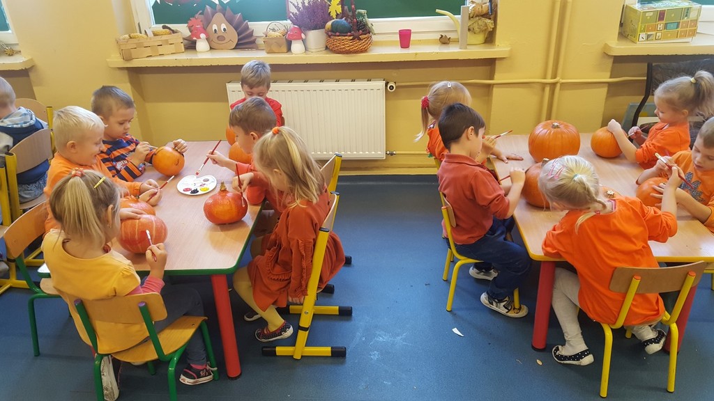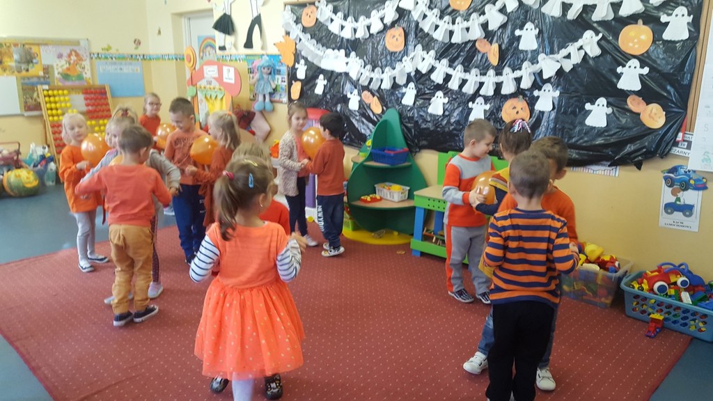 31 października w grupie Tańczące Nutki odbył się „Dyniowy zawrót głowy”. W tym dniu na dzieci czekało wiele ciekawych atrakcji. Przedszkolaki zrobiły przepyszne dyniowe babeczki, miały zawody sportowe, wykonały lampiony, malowały dynie według własnych pomysłów, a także tańczyły z balonami. Nie mogło zabraknąć maty edukacyjnej do nauki kodowania, którą jak widać można wykorzystać w każdej sytuacji. To był wspaniały dzień, który dostarczył nam wszystkim wiele radości i uśmiechu.