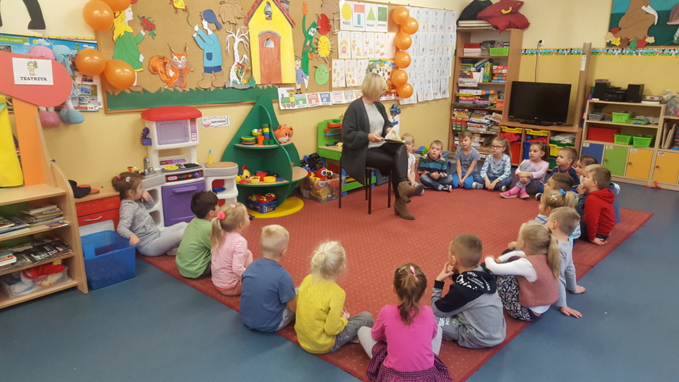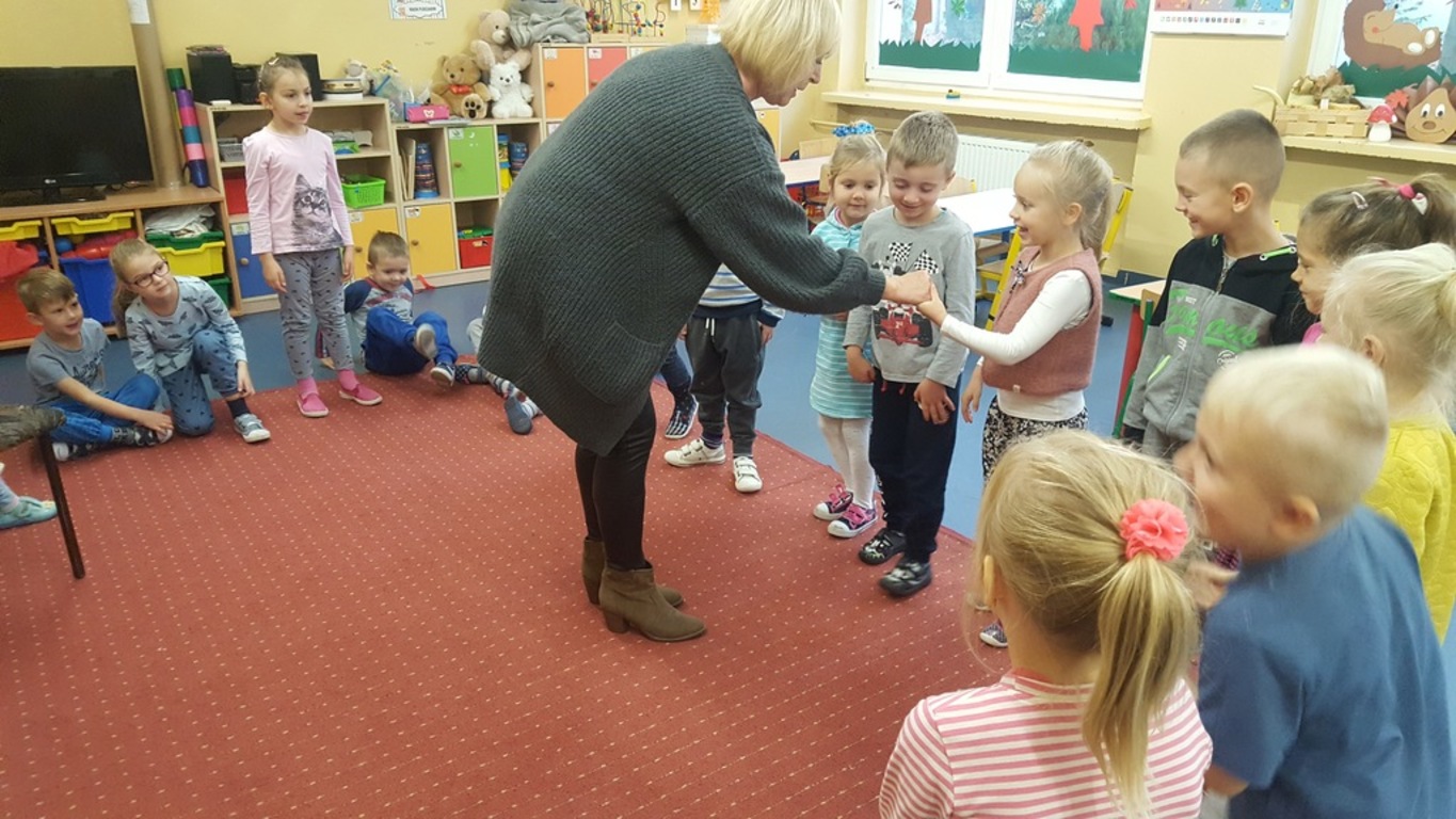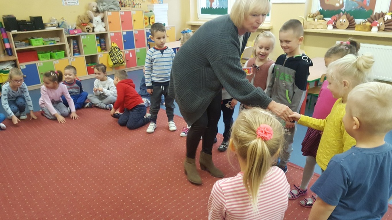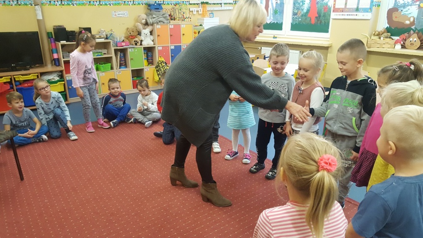 W dniu 13 listopada, przedszkolaków z grupy Tańczące Nutki, odwiedziła Pani Sołtys Skrzatusza- Emilia Kałucka. Pani Emilia przeczytała wspaniałą bajkę o Franklinie, którą dzieci wysłuchały z dużym zainteresowaniem. W podziękowaniu „Nutki” zaśpiewały Pani Sołtys piosenkę i wręczyły słodki upominek. Pani Emilia również przygotowała słodką niespodziankę dla naszych przedszkolaków, za co bardzo dziękujemy. Jesteśmy wdzięczni za przyjęcie zaproszenia i miłe spotkanie.