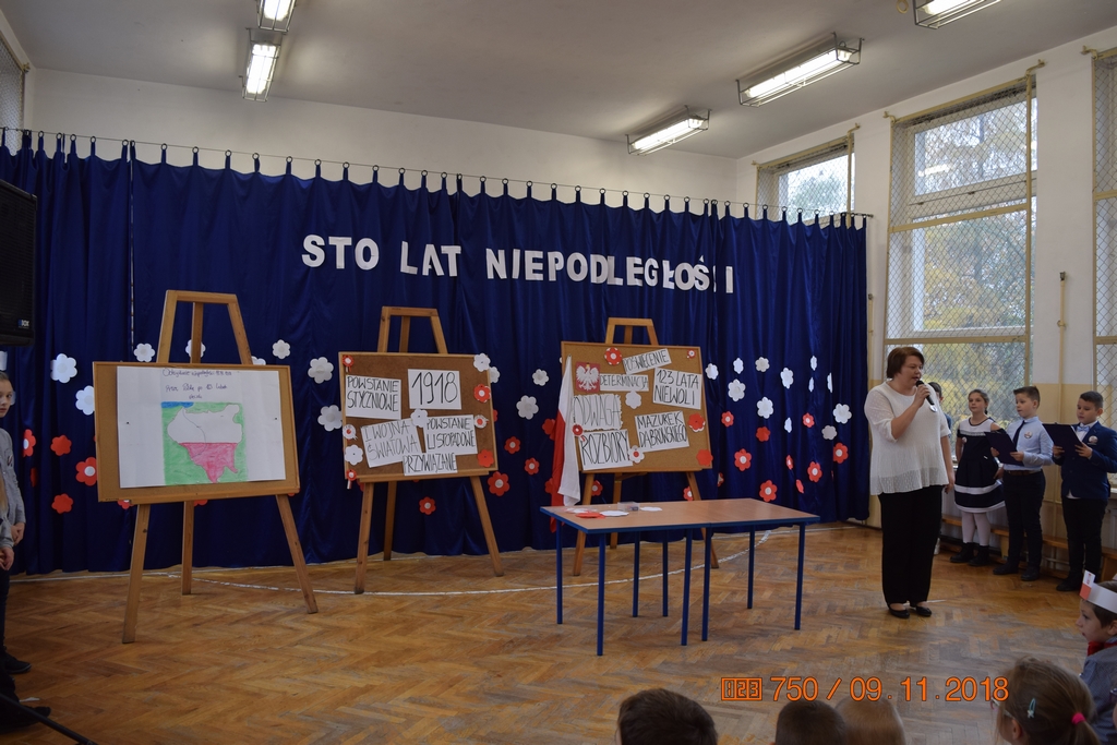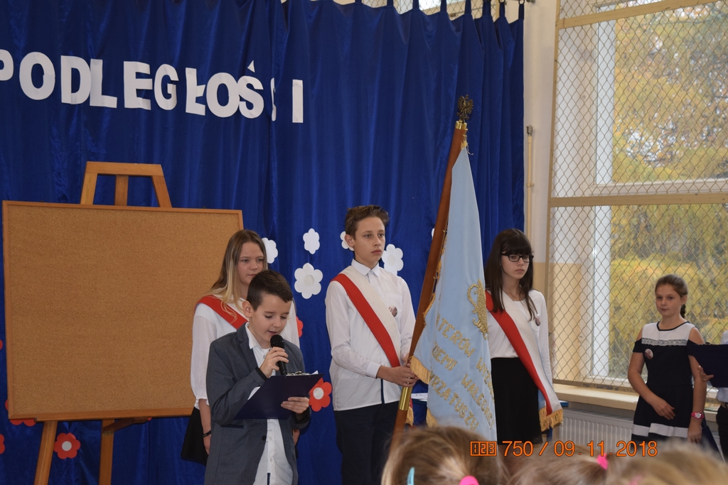 Program artystyczny apelu rozpoczął się do występu przedszkolaków z grupy Tańczących Nutek. Następnie uczniowie klasy VI przybliżyli nam okoliczności utraty niepodległości przez naszą ojczyznę, trudne chwile polskiego narodu pozbawionego kraju, a także pełną ofiar drogę Polaków do wolności. Do refleksji nad minionymi wydarzeniami skłoniły nas również utwory poetyckie oraz pieśni patriotyczne w wykonaniu uczniów klasy IV.