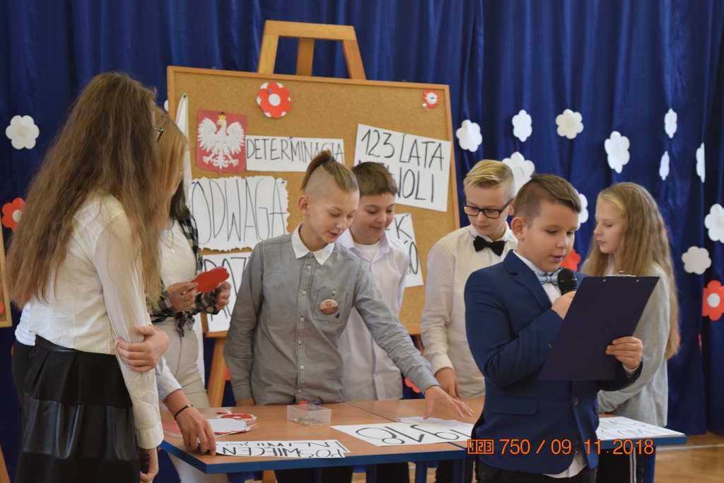 9 listopada nasza szkoła uczestniczyła w biciu „Rekordu dla Niepodległej”. O godzinie 11:11 w ramach świętowania 100. rocznicy odzyskania przez Polskę niepodległości, wszyscy uczniowie, nauczyciele oraz obecni goście wspólnie odśpiewali 4 zwrotki hymnu narodowego. Do akcji zgłoszonych zostało 4,6 mln uczniów z ponad 24 tys. szkół z całej Polski.