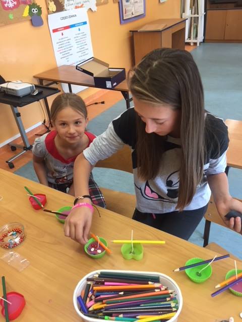 Uczniowie uczęszczający na warsztaty plastyczne „Rączka”, prowadzone przez panią Annę Posadzińską, mieli okazję w ostatnim czasie tworzyć ozdoby jesienne, odkryć nowy sposób na zabawę guzikami, a także przygotować pachnące czekoladą świeczki, idealne na chłodne, jesienne wieczory.