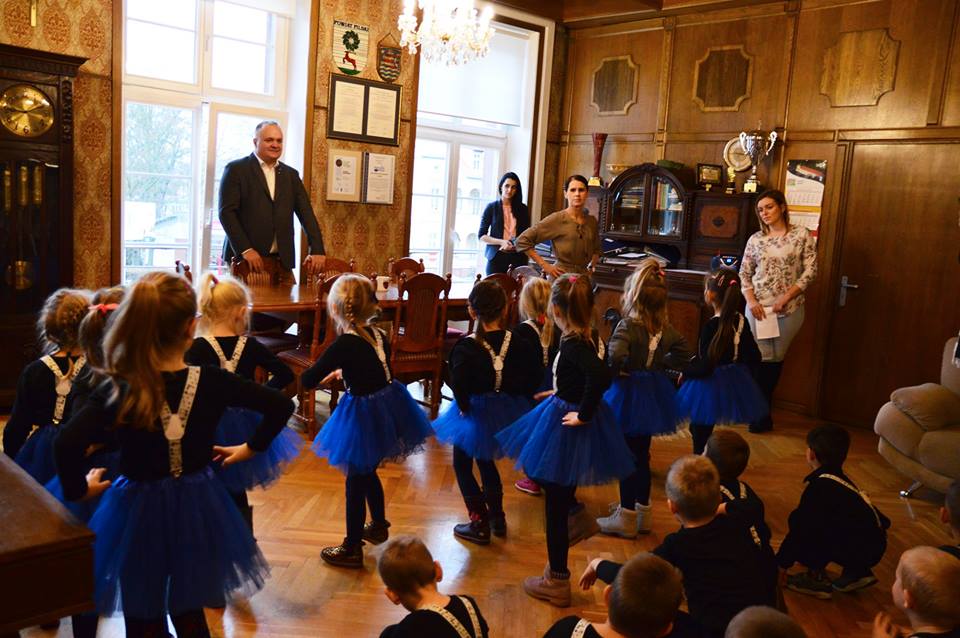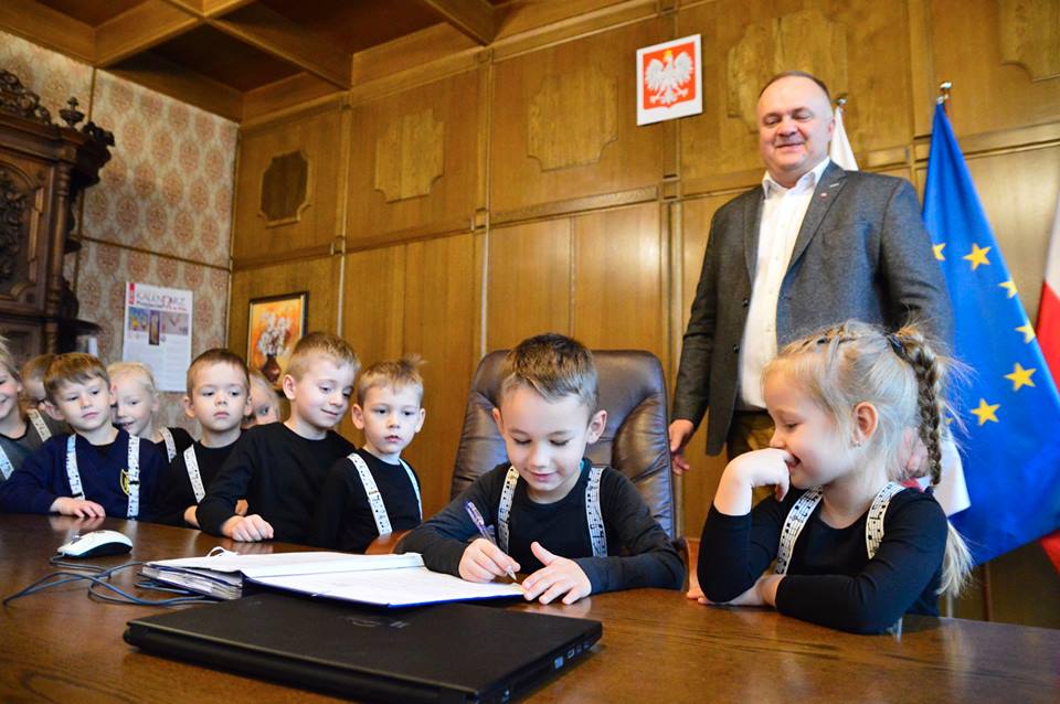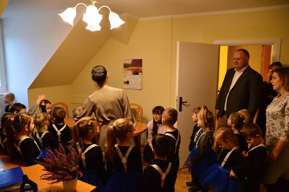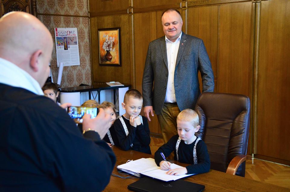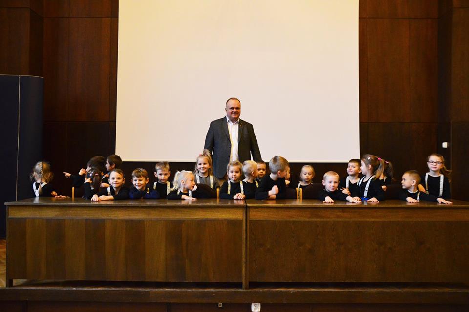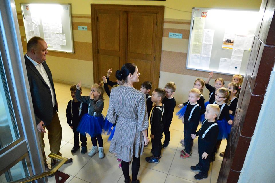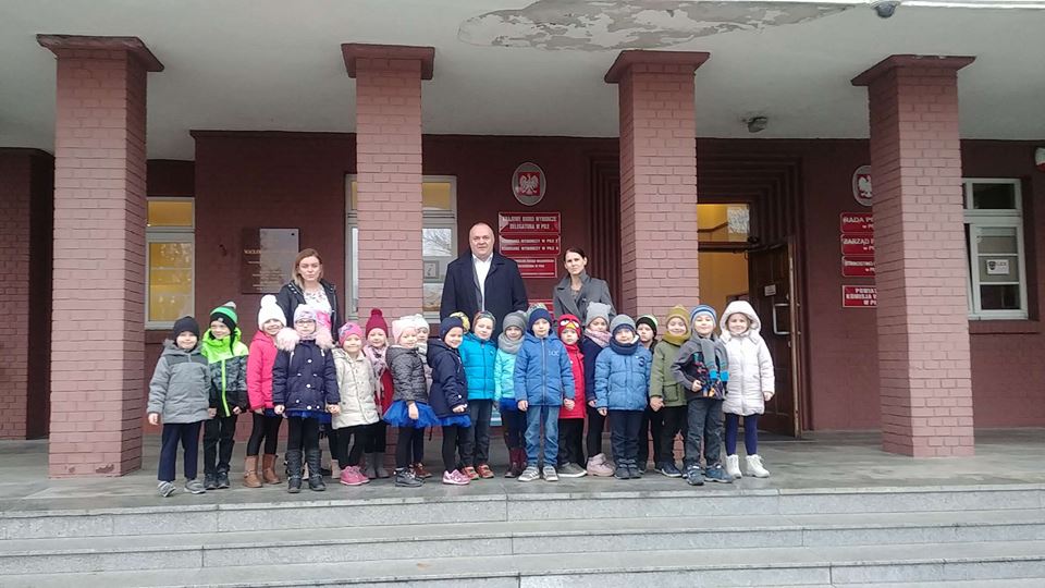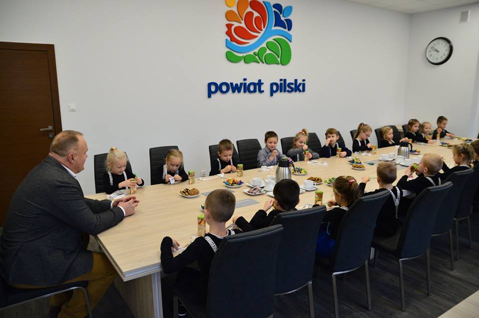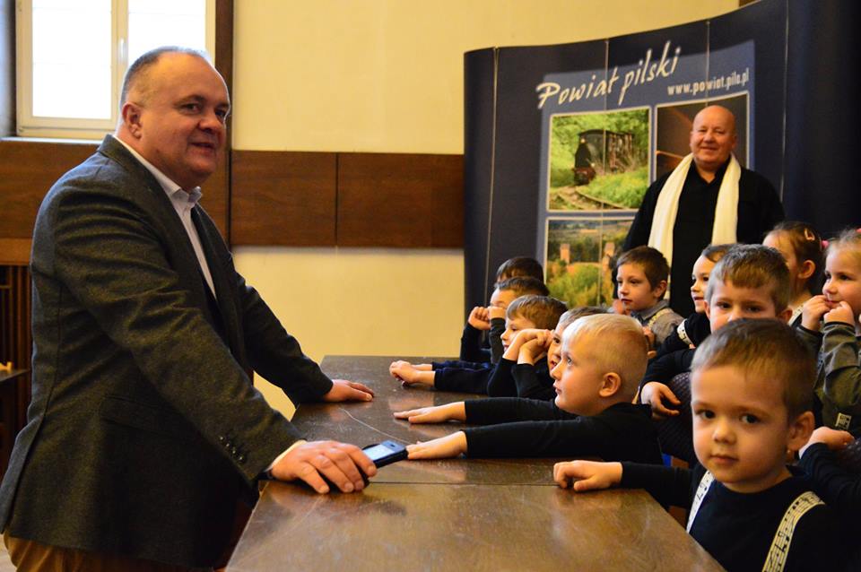 W dniu 19.11.2018 r. dzieci z grupy przedszkolnej” Tańczące Nutki” wraz z wychowawczynią Renatą Duszara i Panem Januszem Drożdżem( założycielem Stowarzyszenia Przyjazna Wieś w Skrzatuszu) ,udały się do Starostwa Powiatowego w Pile. Głównym celem podróży było spotkanie z Panem Starostą –Eligiuszem Komarowskim. Gdy dotarliśmy na miejsce, Pan Starosta powitał nas i osobiście zaprowadził do sali konferencyjnej, gdzie na dzieci czekał słodki poczęstunek. Następnie udaliśmy się do gabinetu Pana Eligiusza, gdzie przedszkolaki zaprezentowały swoje umiejętności artystyczne. Nasza wycieczka miała również cel edukacyjny, dlatego też Pan Starosta opowiedział dzieciom na czym polega jego praca i oprowadził nas po Starostwie Powiatowym, dzięki czemu mogliśmy poznać pracowników samorządowych, którzy przyjęli nas bardzo serdecznie.