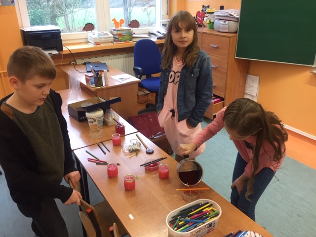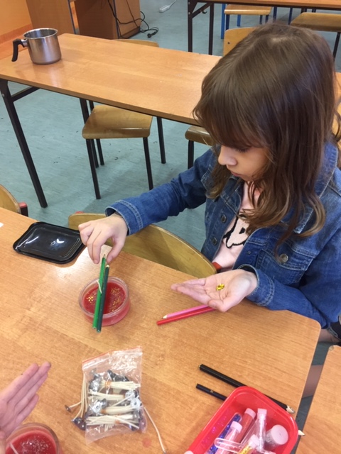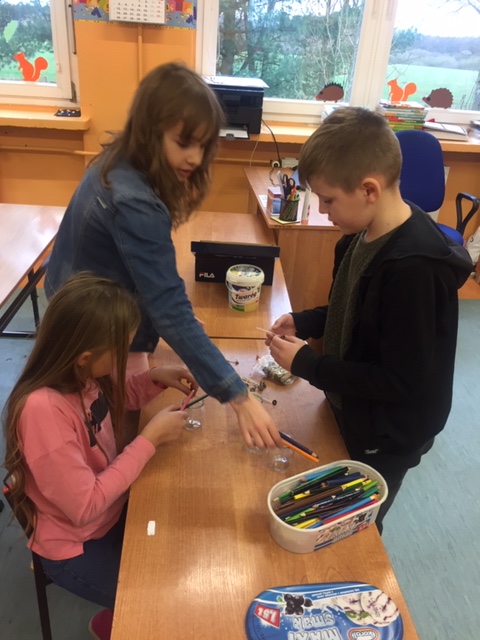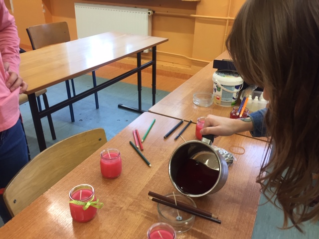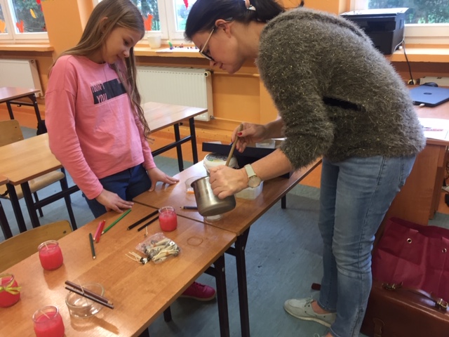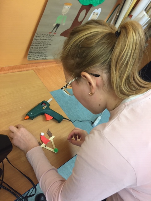 Na warsztatach plastycznych „Rączka” przygotowania do świątecznego kiermaszu ruszyły pełną parą. W każdy wtorek na 6 godzinie lekcyjnej, chętni uczniowie, pod okiem pani Anny Posadzińskiej, przygotowują ozdoby świąteczne, które będzie można kupić na kiermaszu organizowanym w naszej szkole. Na ostatnim spotkaniu powstały pachnące świeczki i ozdoby choinkowe z patyczków do lodów. Podczas kolejnych zajęć powstaną kartki bożonarodzeniowe i aniołki z masy solnej.