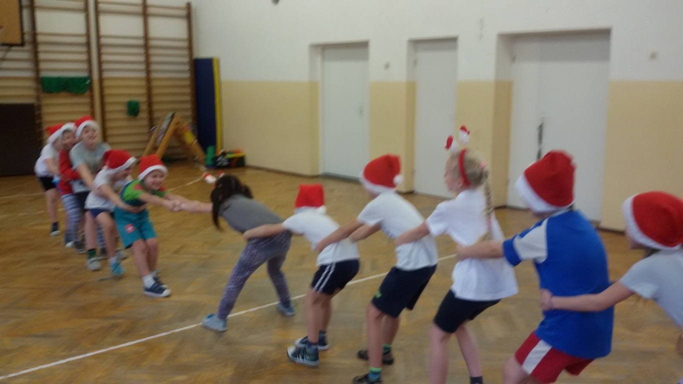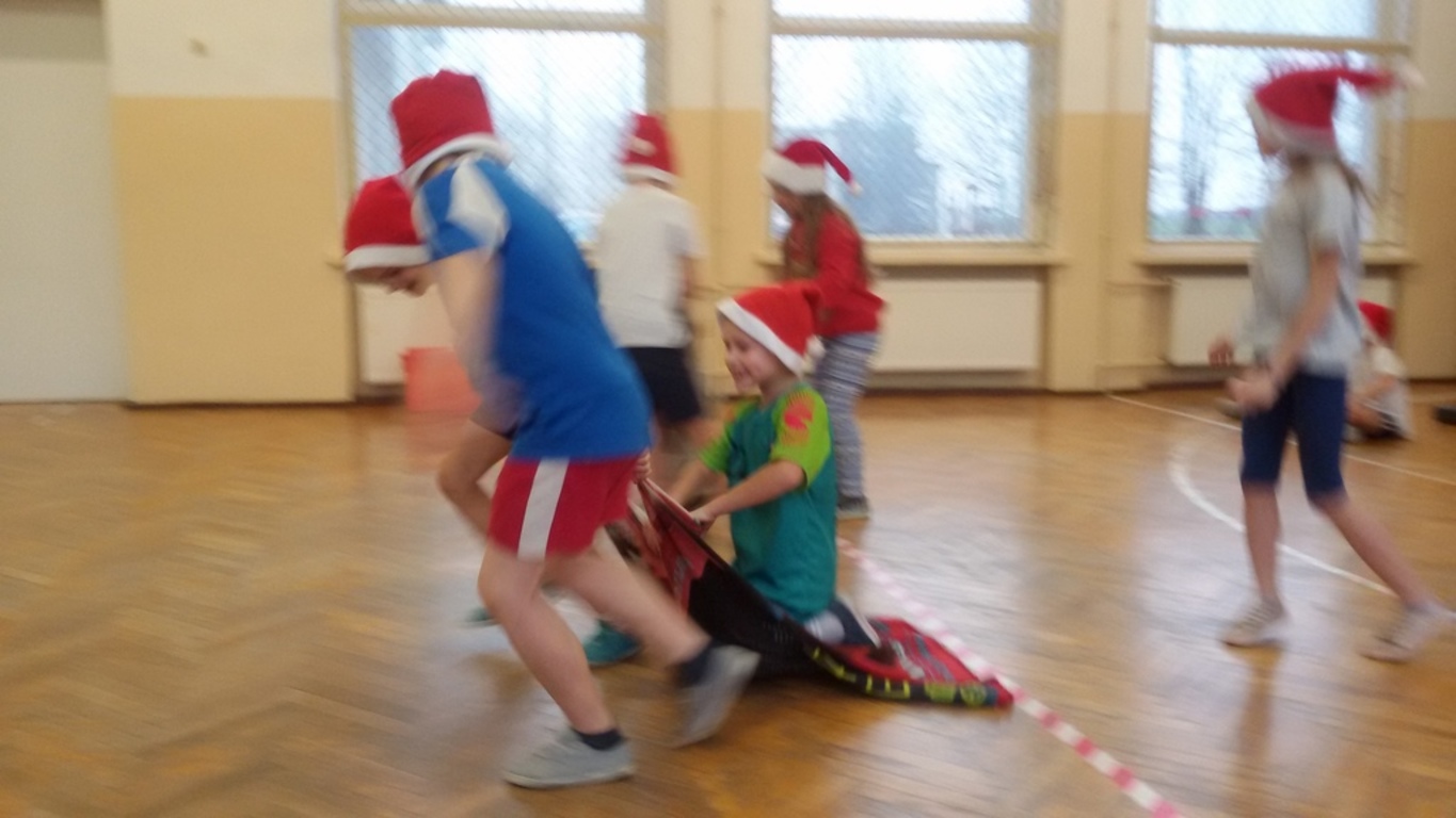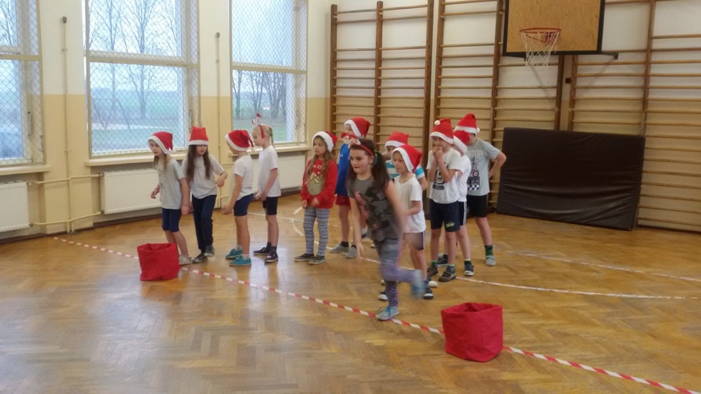 6 grudnia uczniowie z klasy 1-3 rywalizowali z sobą w nietypowych, mikołajkowych zmaganiach sportowych.Celem imprezy była integracja dzieci w różnym wieku podczas zabaw i gier sportowych.