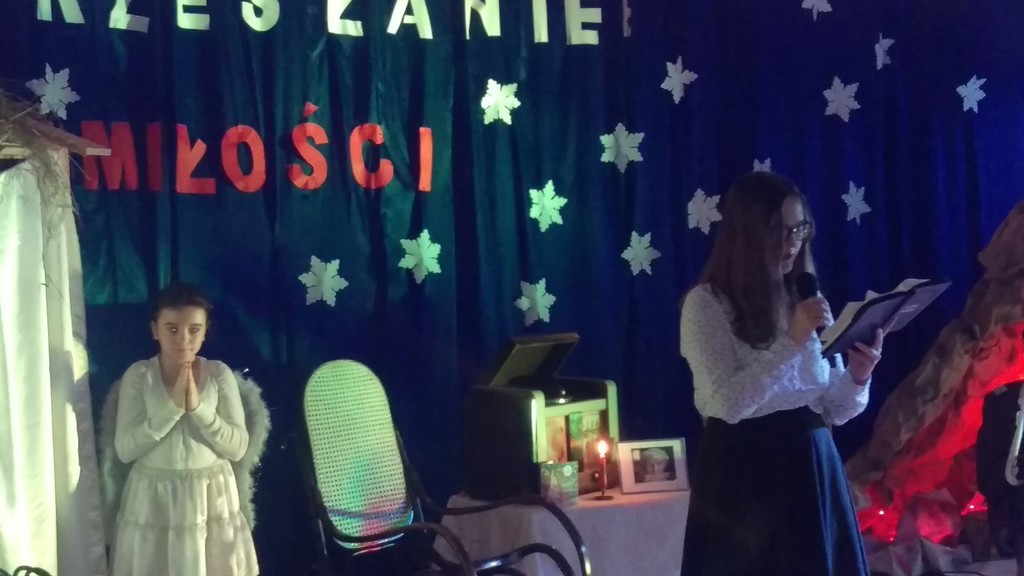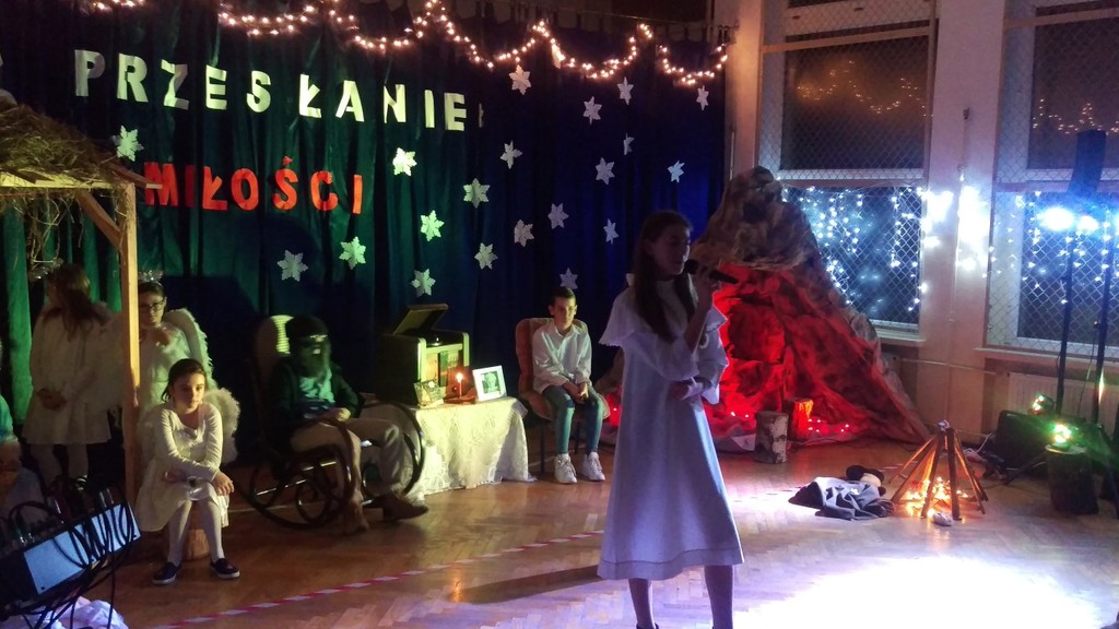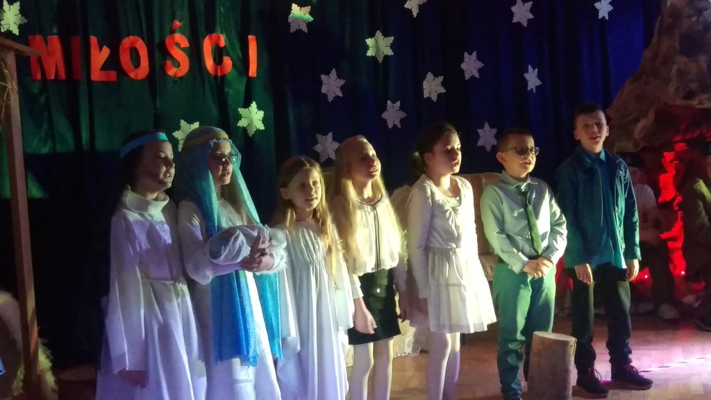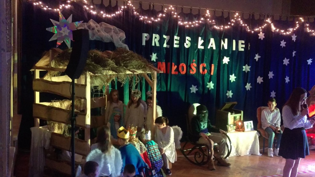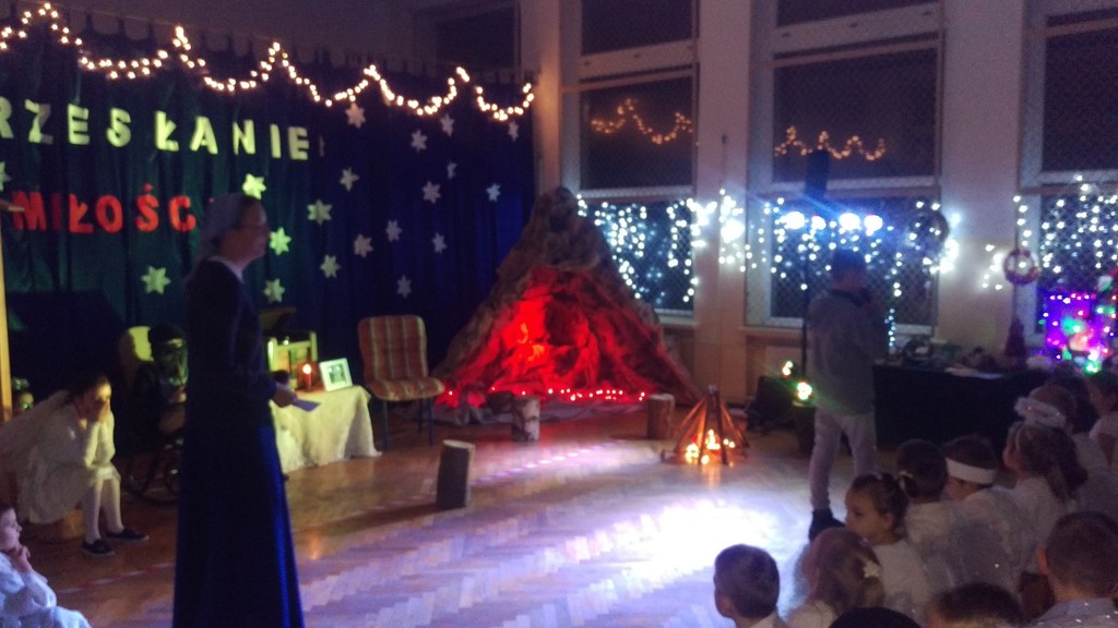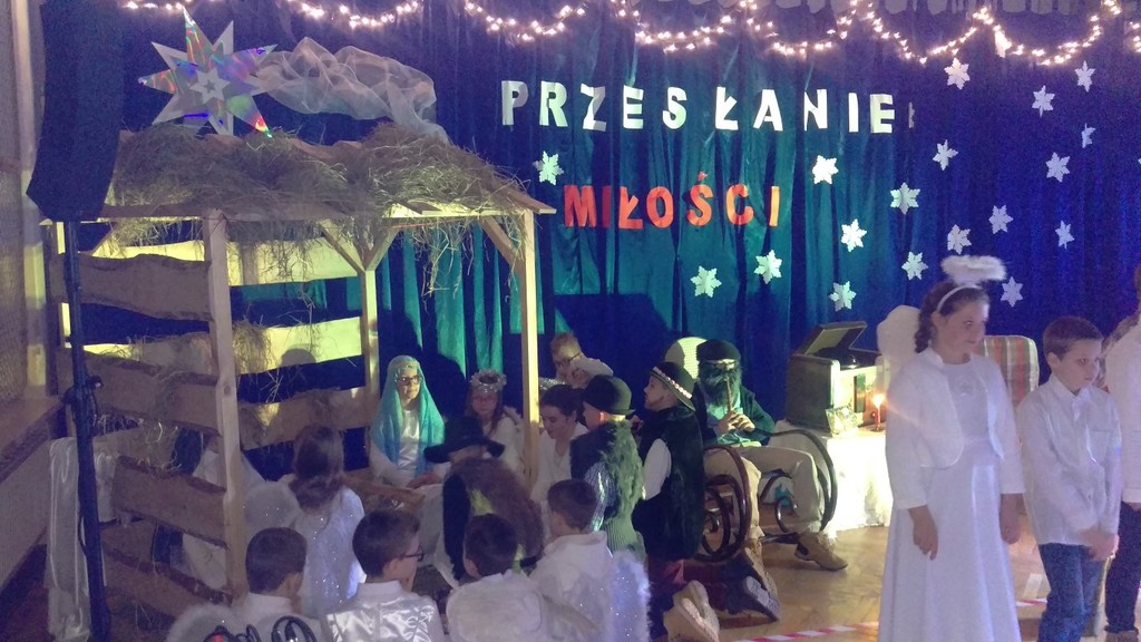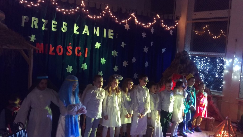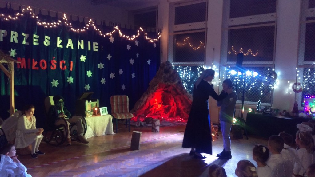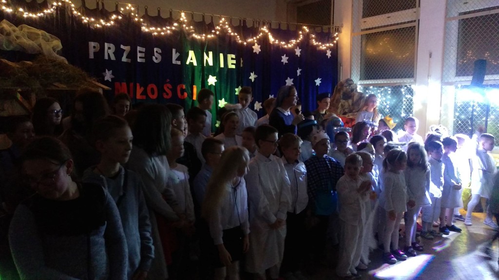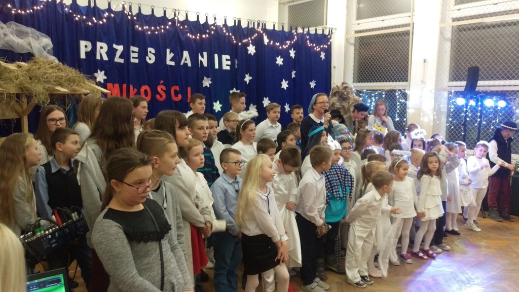 pod takim hasłem 20.12.18 r odbyły się jasełka w naszej szkole. Odpowiedzialną osoba za tę część była s.Natalia przy współpracy z nauczycielami. Wielką radością jest fakt, że w przedstawieniu był zaangażowany każdy uczeń od 0-8 klasy. Mogliśmy także liczyć na pomoc rodziców w dekoracji sceny. Tradycyjnie po występie odbyła się licytacja dekoracji świątecznych, kiermasz, koło fortuny, nie zabrakło także kawiarenki. Zapraszamy do obejrzenia zdjęć.