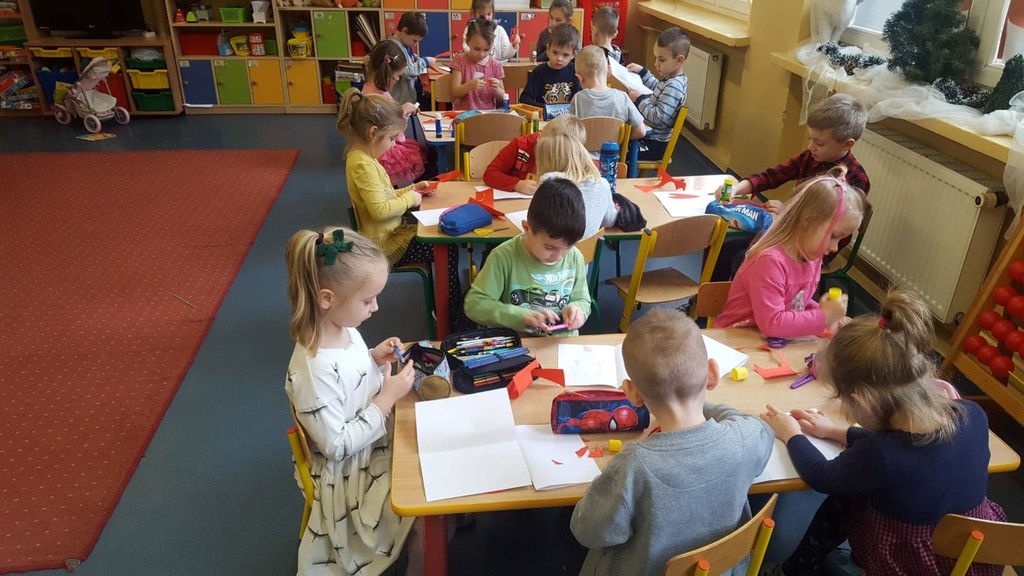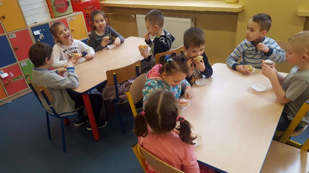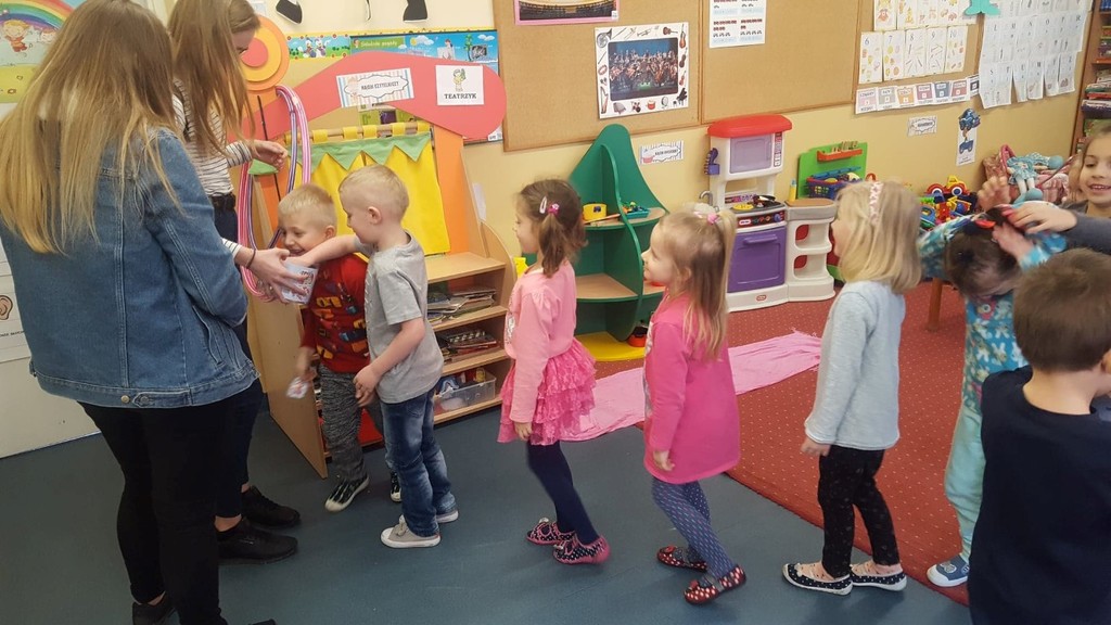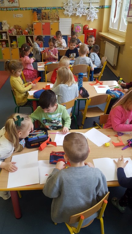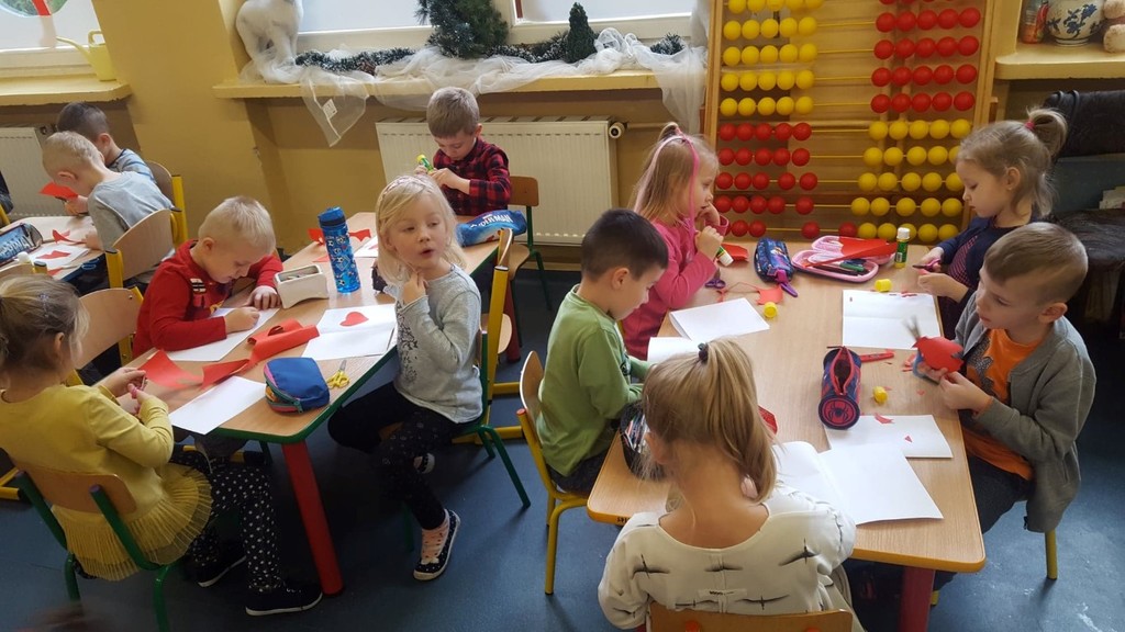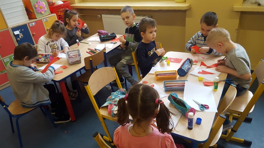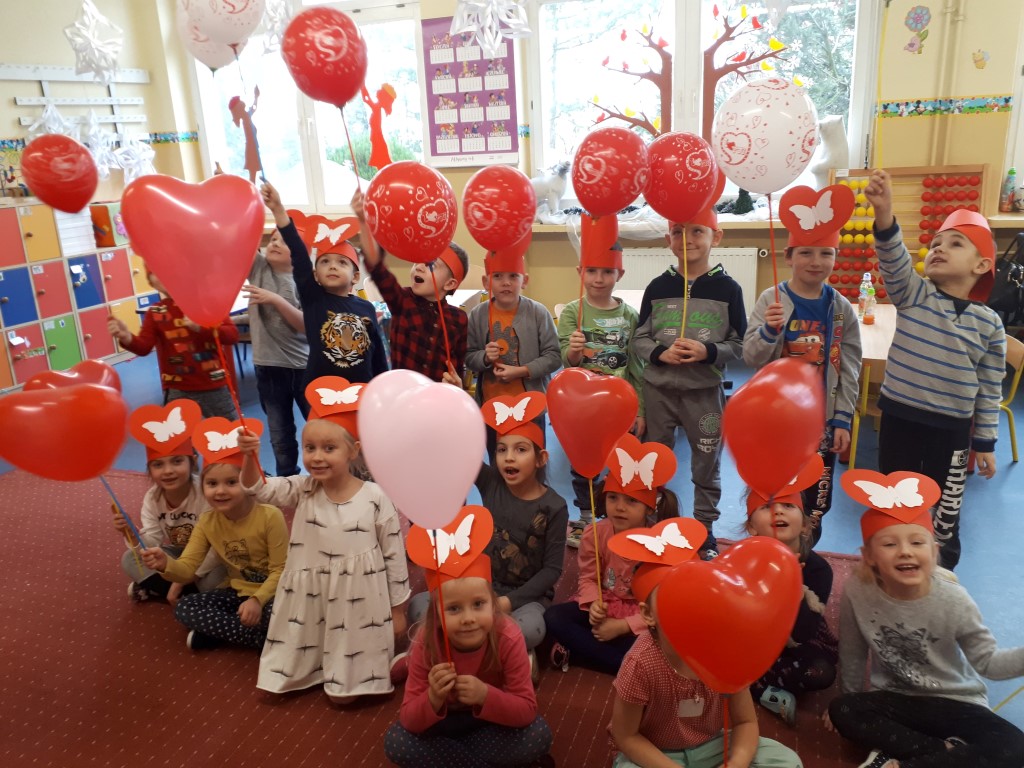 Walentynki już na dobre zagościły w kalendarzu uroczystości grupy przedszkolnej Tańczące Nutki. Świętowaliśmy ten dzień pod znakiem przyjaźni i radości przebywania ze sobą. Dzieci zjadły walentynkowe babeczki, zrobione od serca, wykonały laurki dla swoich ukochanych rodziców, a na koniec dnia otrzymały walentynkowe balony. Miłą niespodzianką były lizaczki w kształcie serca od Samorządu Uczniowskiego, za które bardzo dziękujemy.