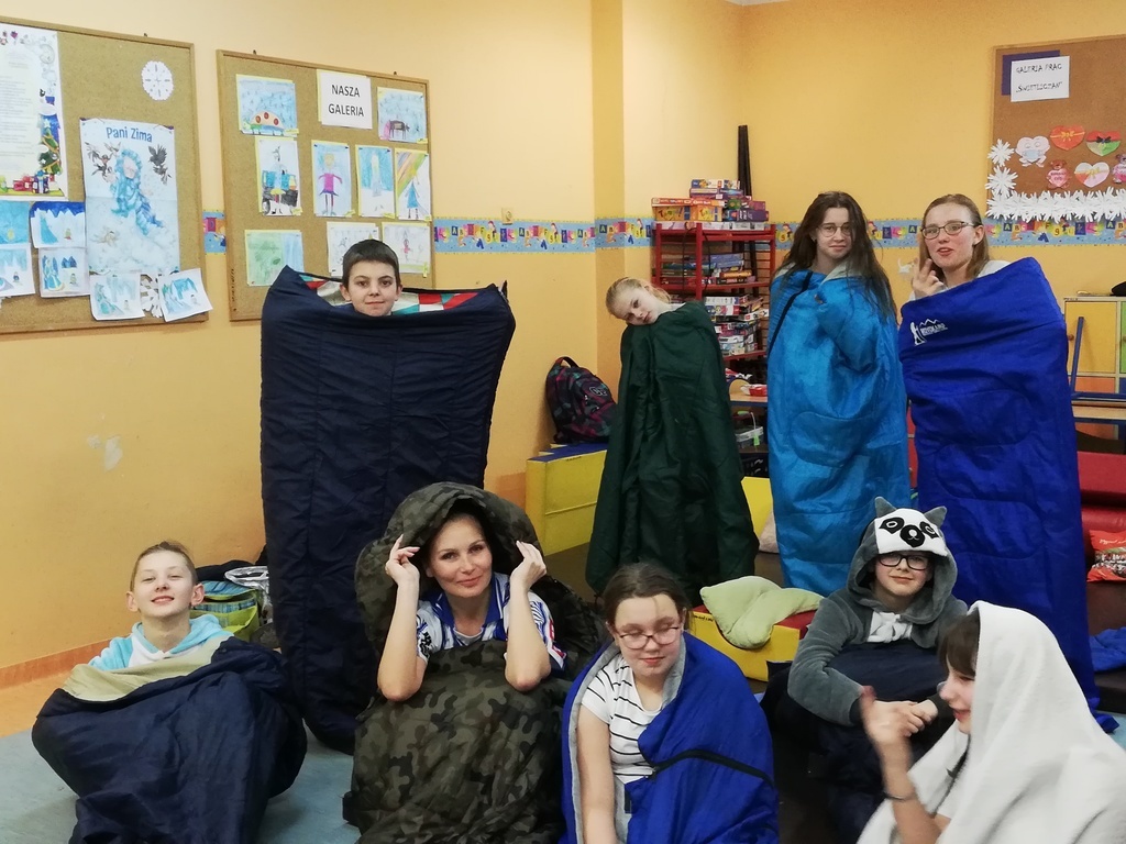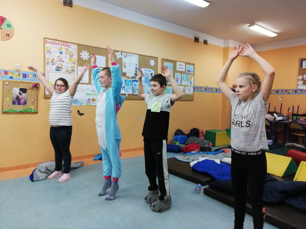 W dniach 19- 20 lutego odbyła się w naszej szkole impreza klasy VI i VII „ NOC W SZKOLE”. Celem spotkania było zrelaksowanie ucznia po zajęciach lekcyjnych oraz integracja zespołów klasowych. Podczas „ NOCY W SZKOLE” uczniowie rozpoczęli zabawę od godzinnych ćwiczeń „z” Ewą Chodakowską, zorganizowali turniej piłki siatkowej, wspólnie przygotowali kolację oraz urządzili wieczór SPA. Na koniec wieczoru uczniowie zamienili sale lekcyjne w kino.