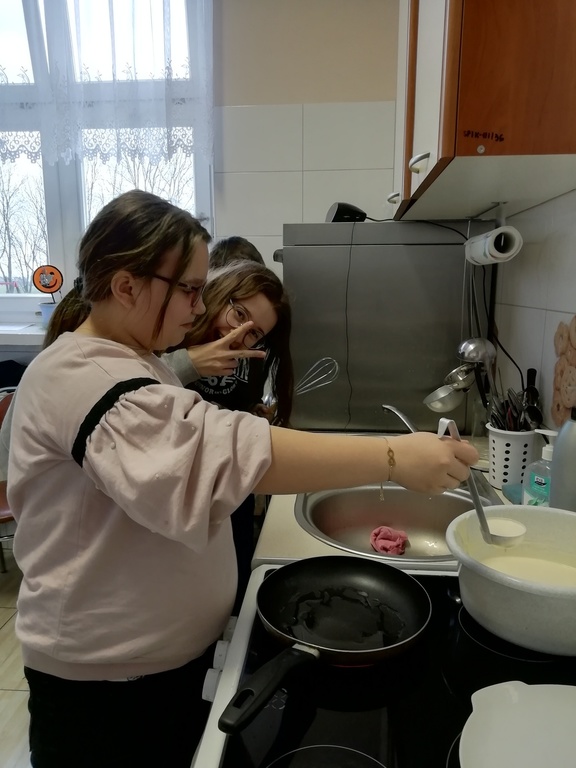 A oto proces tworzenia naleśników przez uczniów klasy VI.