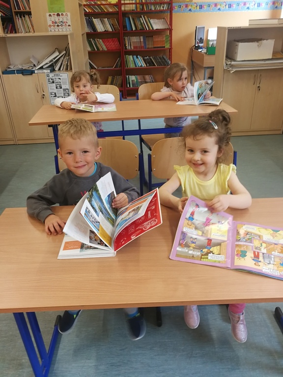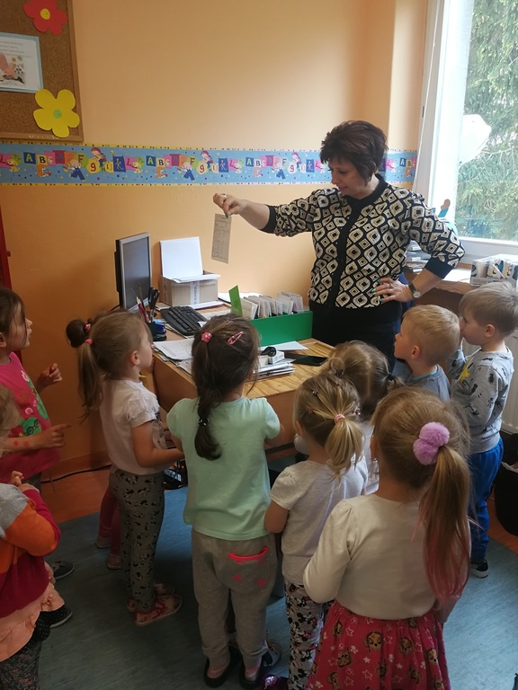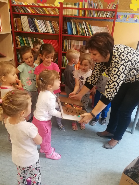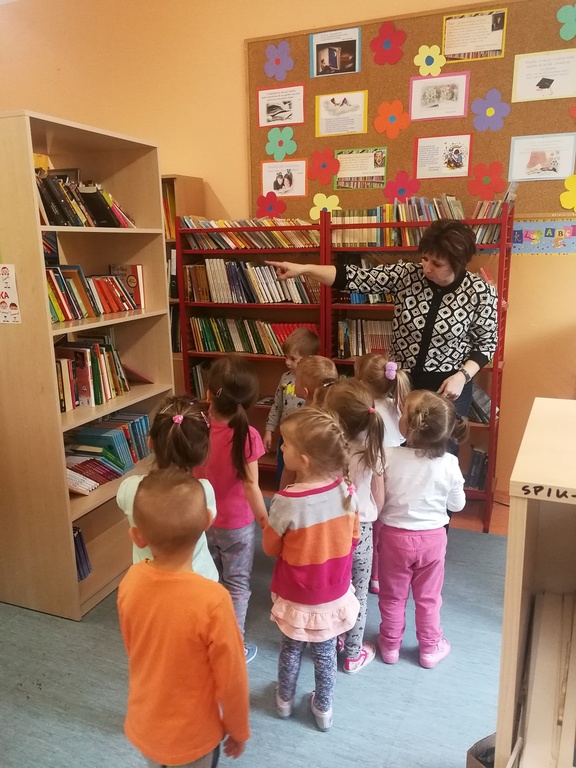 W związku z obchodzonym niedawno Dniem Bibliotekarza i Bibliotek, dzieci z grupy Krasnale wybrały się do szkolnej biblioteki. Pani Ela zapoznała dzieci z biblioteką oraz z zasadami korzystania i wypożyczania książek. Dzieci miały możliwość pooglądania wybranych przez siebie książek. Spotkanie odbyło się w miłej, pełnej uśmiechu atmosferze. Dzieci obiecały pani Eli, że niedługo znów ją odwiedzą.