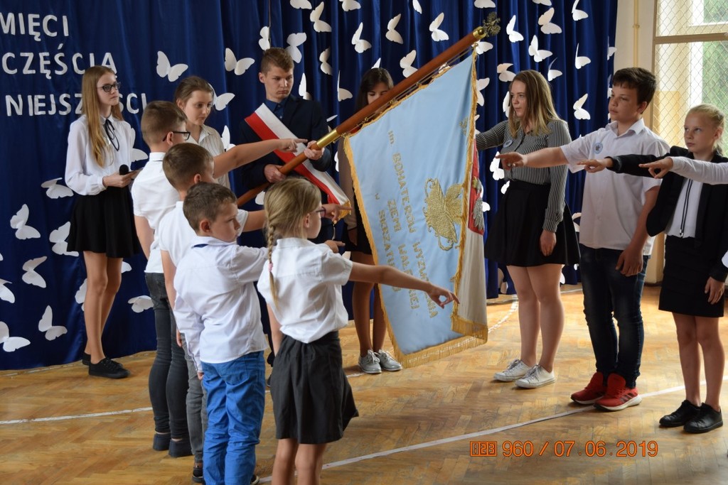 Sztandar dla społeczności szkolnej jest symbolem Polski – Narodu – Ziemi, symbolem Małej Ojczyzny, jaką jest szkoła i jej najbliższe środowisko. W tym roku nasza szkoła obchodziła jubileusz 30-lecia nadania sztandaru. Z tej okazji 7 czerwca odbył się uroczysty apel. W jego trakcie uczniowie złożyli uroczyste ślubowanie, przedstawili wpływ wydarzeń z roku 1989 na dzieje naszej ojczyzny, a recytując patriotyczne wiersze i śpiewając hymn szkoły pragnęli ukazać, że wartości cenione dawniej są dla nich aktualne.
