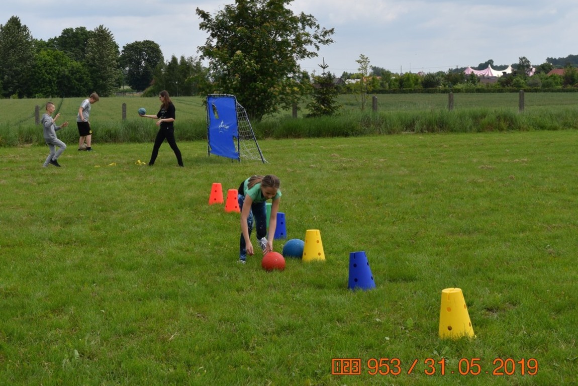 - Tor przeszkód: skoki w workach, wyścigi na piłkach, przejście po drabince gimnastycznej, rzuty do tarczy, toczenie opony w slalomie, bieg między pachołkami , drabinka koordynacyjna , przeskoki zawrotne przez ławeczkę, toczenie piłki lekarskiej po ósemce, przeskok przez skrzynię , przejście po równoważni, przewlekanie dwóch szarf, toczenie opony po ławeczce gimnastycznej, przejście po wyspach, strzał do bramki.