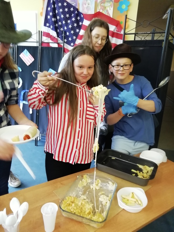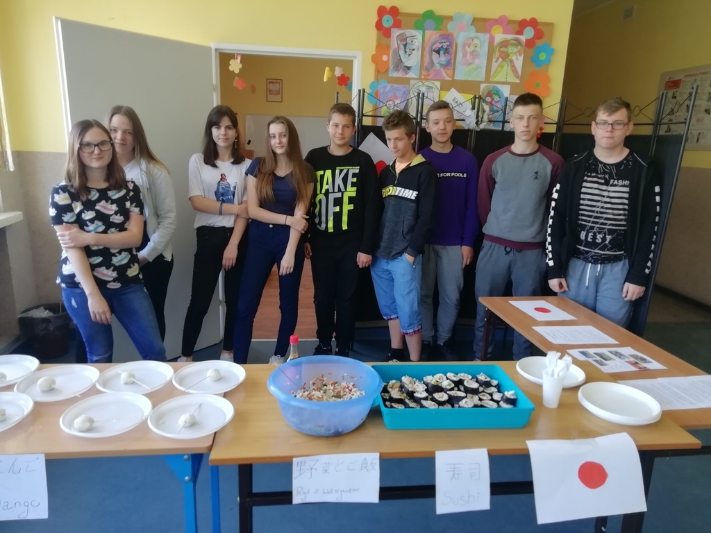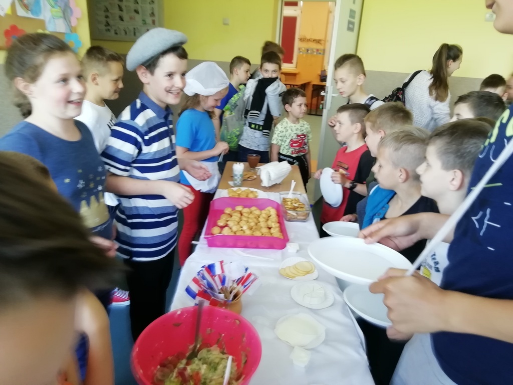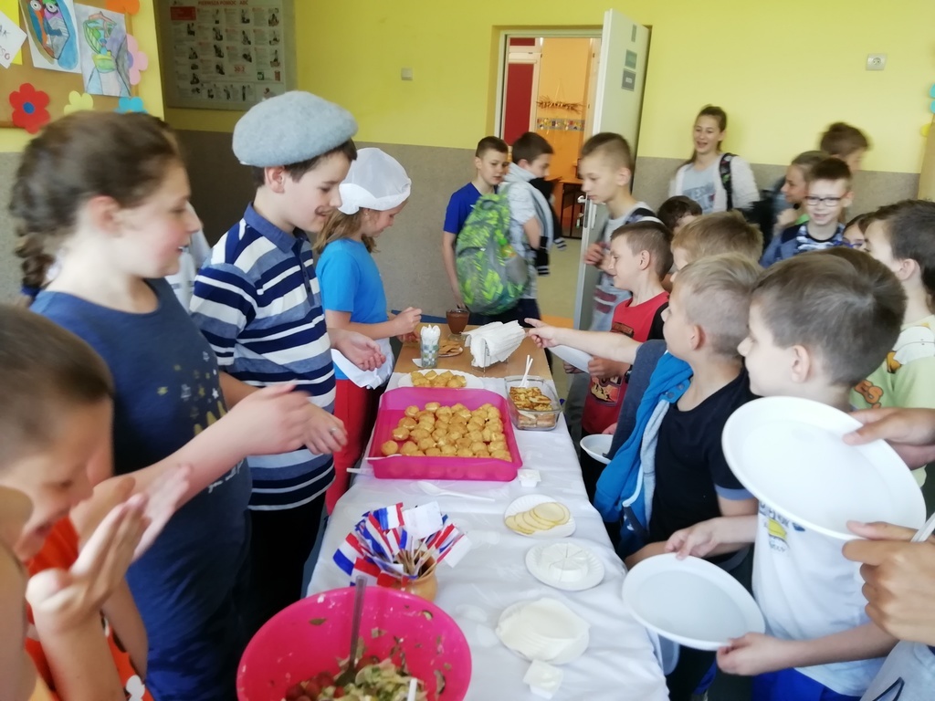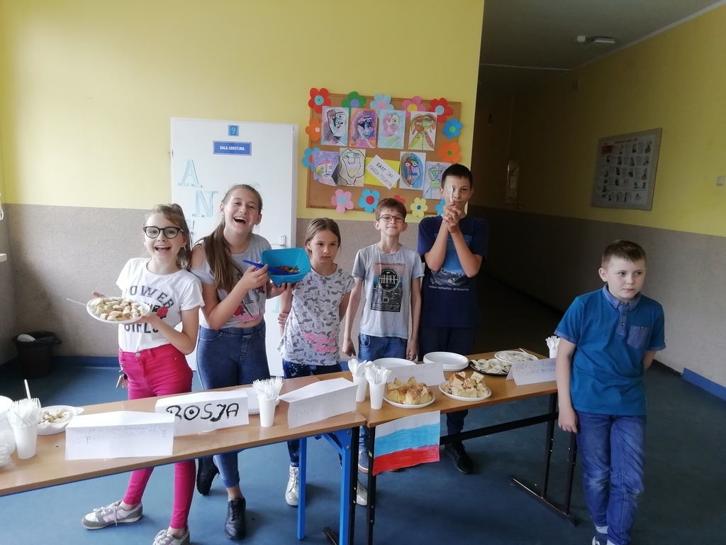 W dniach 20-24 maja w naszej szkole obchodziliśmy „Pyszny Tydzień Języków”. Uczniowie klas 4-8 przygotowywali każdego dnia potrawy z wylosowanego przez siebie kraju. Podczas poczęstunku młodzież opowiadała o serwowanych potrawach, ciekawostkach nt. danego kraju oraz uczyła jak się pisze i wymawia nazwy poszczególnych produktów.