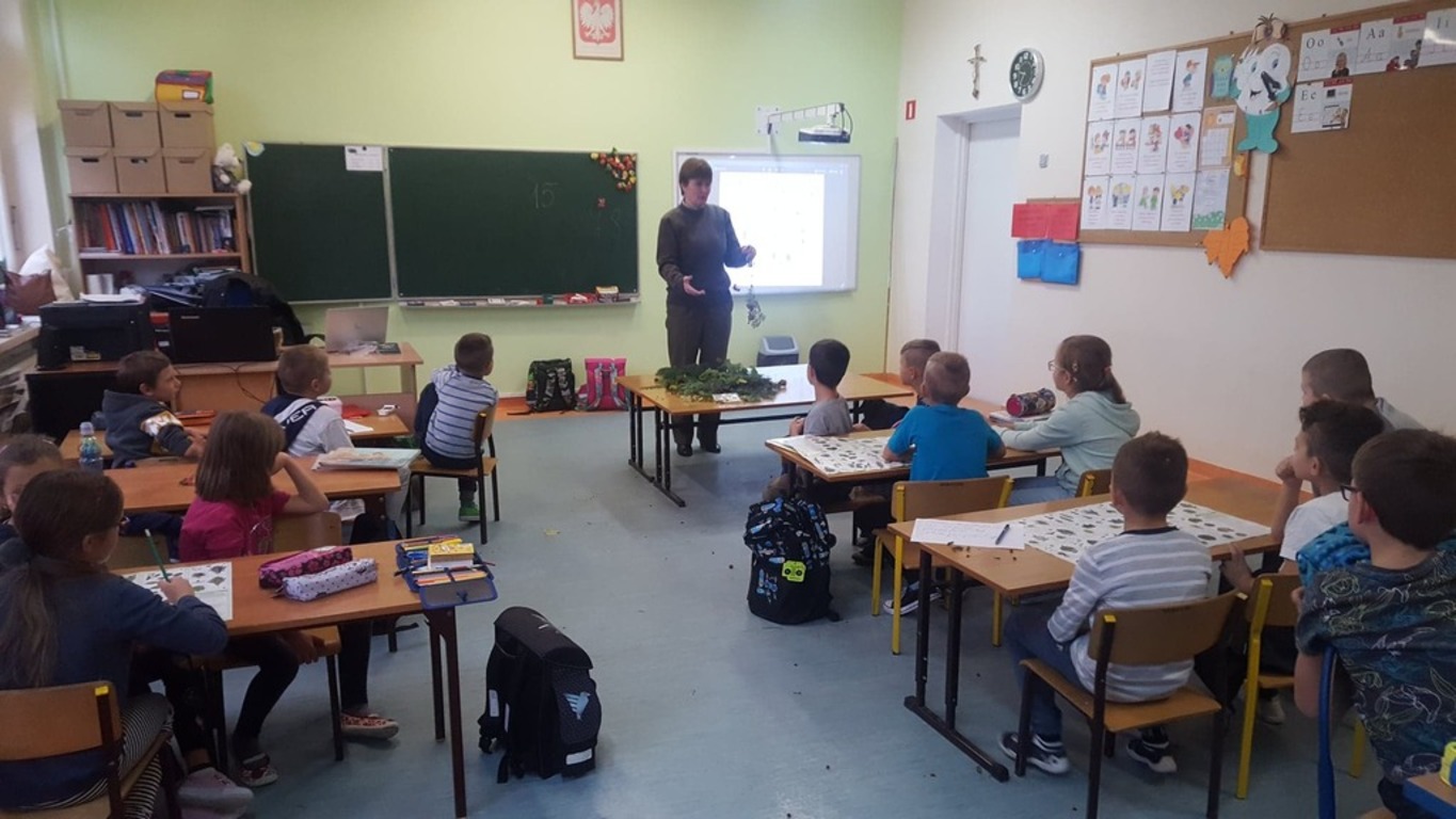 Z okazji Dnia Drzewa, w dniu 10.10.2019 r. odbyły się warsztaty przyrodnicze z Panią Leśnik. Uczniowie klas 1-3 nie tylko poznali gatunki drzew i ich owoce, ale również uczyli się współpracy w grupie. Zajęcia były bardzo ciekawe, wyzwalające pełne zaangażowanie dzieci. Dziękujemy Pani Ani za przyjęcie zaproszenia i czekamy na następne spotkanie.