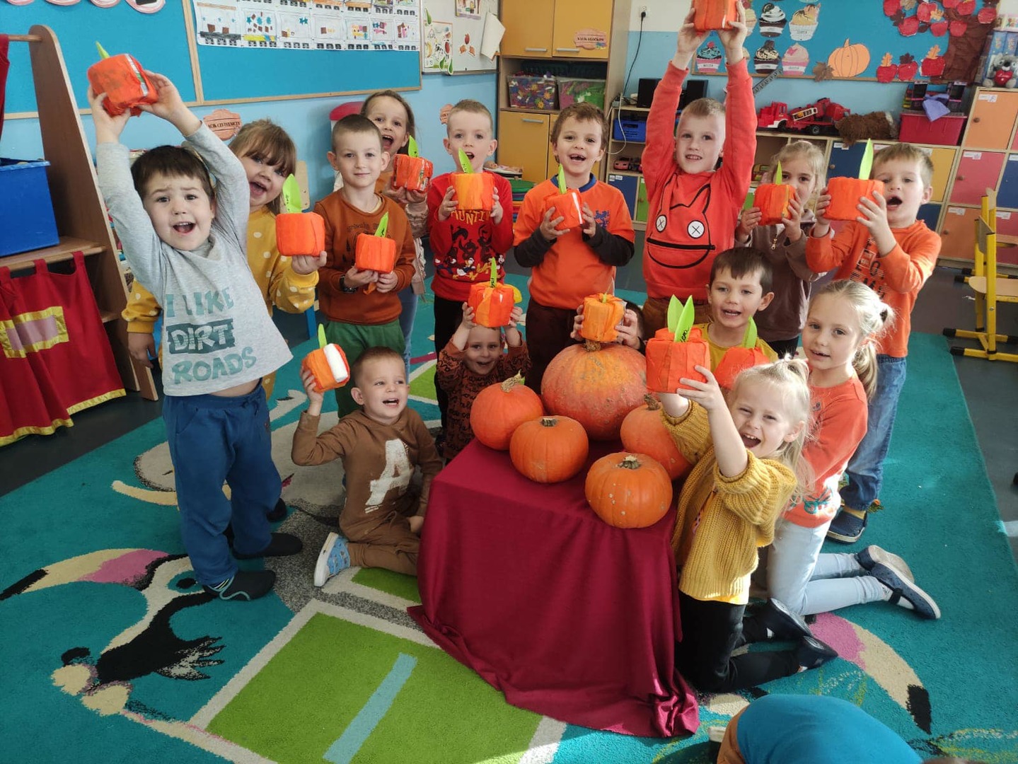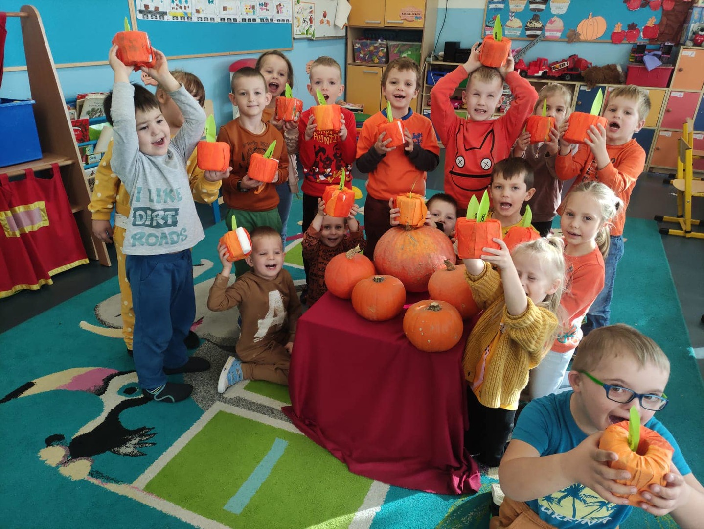 26.10.22 w grupie Małych Tropicieli świętowaliśmy Dzień Dyni. Przedszkolaki mogły obejrzeć przyniesione do przedszkola dynie. Poznały także cykl jej rozwoju. Ten dzień był przepełniony zabawami ruchowymi oraz zajęciami plastycznymi. Wykorzystaliśmy klamerki oraz pestki dyni do zadań matematycznych a z przyniesionego papieru toaletowego dzieci wykonały własne dynie