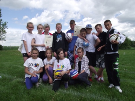 Każda szkoła otrzymała dyplomy i nagrody w postaci sprzętu sportowego, które wręczała pani dyrektor Katarzyna Staszczyk. Nagrody zostały ufundowane przez Urząd Gminy w Szydłowie.
